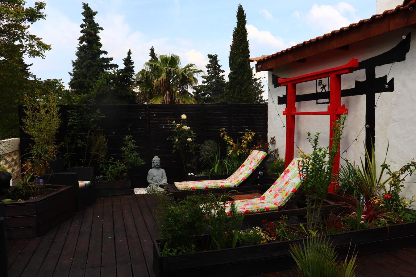 Appartement avec Terrasse. Cet appartement dispose d’une terrasse meublée, de la climatisation, d’un coin salon et d’une télévision à écran plat. L’hébergement comprend une cuisine entièrement équipée avec un four et un micro-ondes. La salle de bains privative est pourvue d’une douche. Vous pourrez profiter d’une vue sur le jardin.