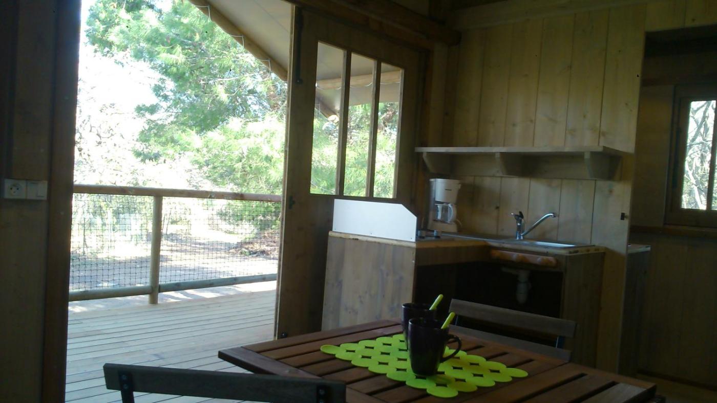 Maison sur Pilotis. This house on stilts features a sofa, kitchenette and terrace. ;