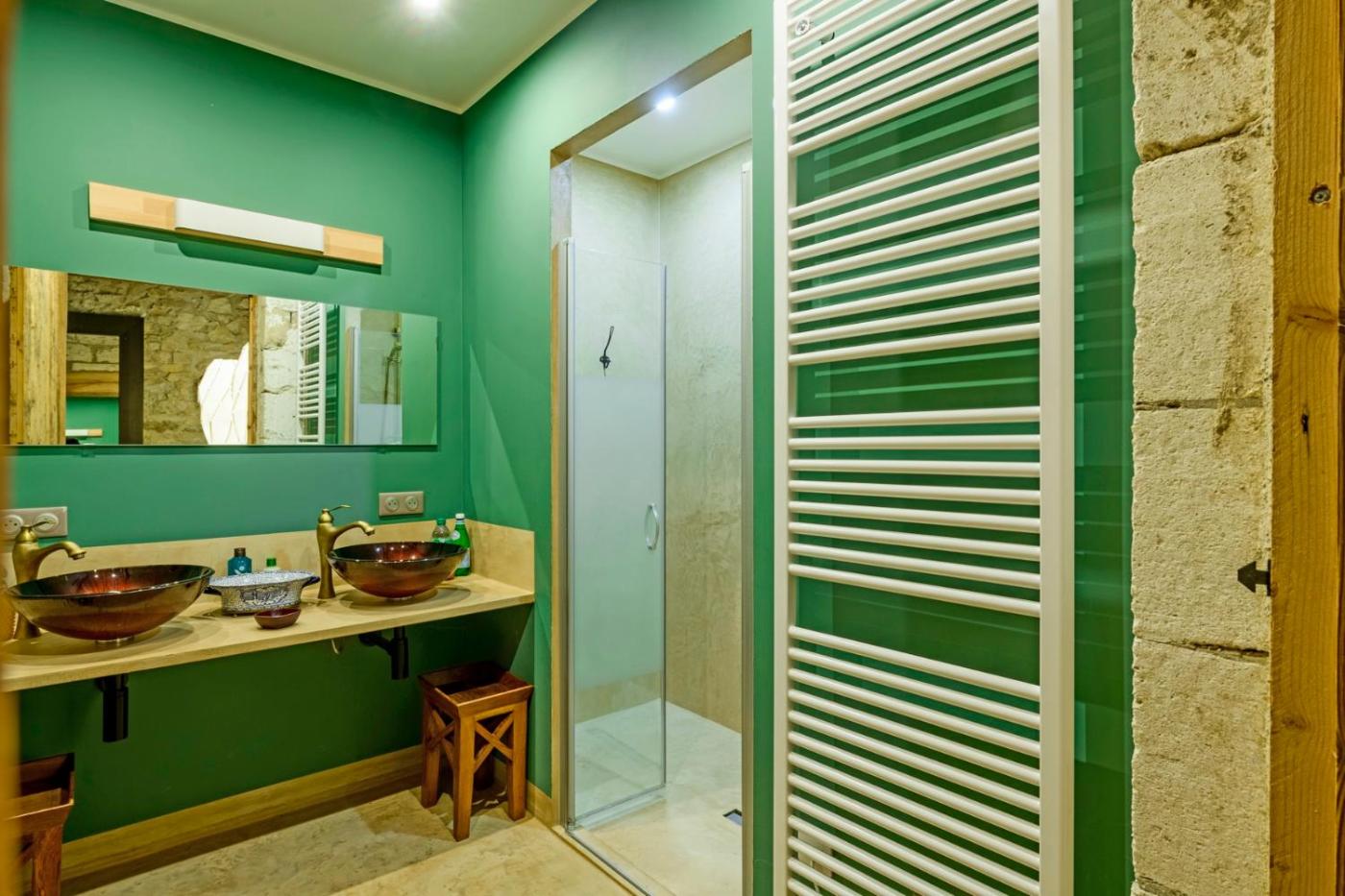 Chambre Double avec Salle de Bains Privative. The spacious double room features air conditioning, soundproof walls, as well as a private bathroom boasting a walk-in shower and a hairdryer. This double room has a coffee machine, a seating area, flat-screen TV, as well as winechampagne for guests. The unit has 1 bed. ;