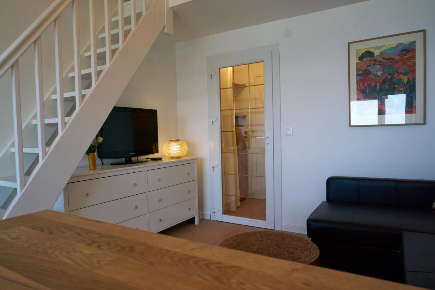 Appartement 1 Chambre. In the kitchen, guests will find a stovetop, a refrigerator, a dishwasher and kitchenware. The air-conditioned apartment features a flat-screen TV with streaming services, a washing machine, a private entrance, a tea and coffee maker as well as sea views. The unit has 2 beds.