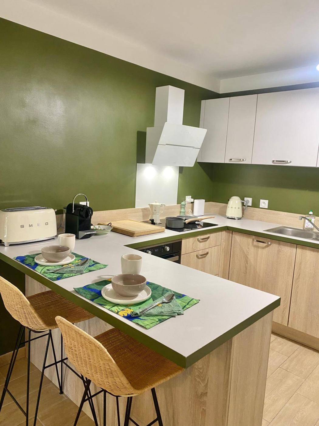 Appartement - Vue sur Jardin. This apartment is comprised of 1 living room, 1 separate bedroom and 1 bathroom with a shower and a hairdryer. The well-equipped kitchen features a stovetop, a refrigerator, kitchenware and an oven. Featuring a terrace with garden views, this apartment also offers a washing machine and a flat-screen TV with cable channels. The unit offers 2 beds.