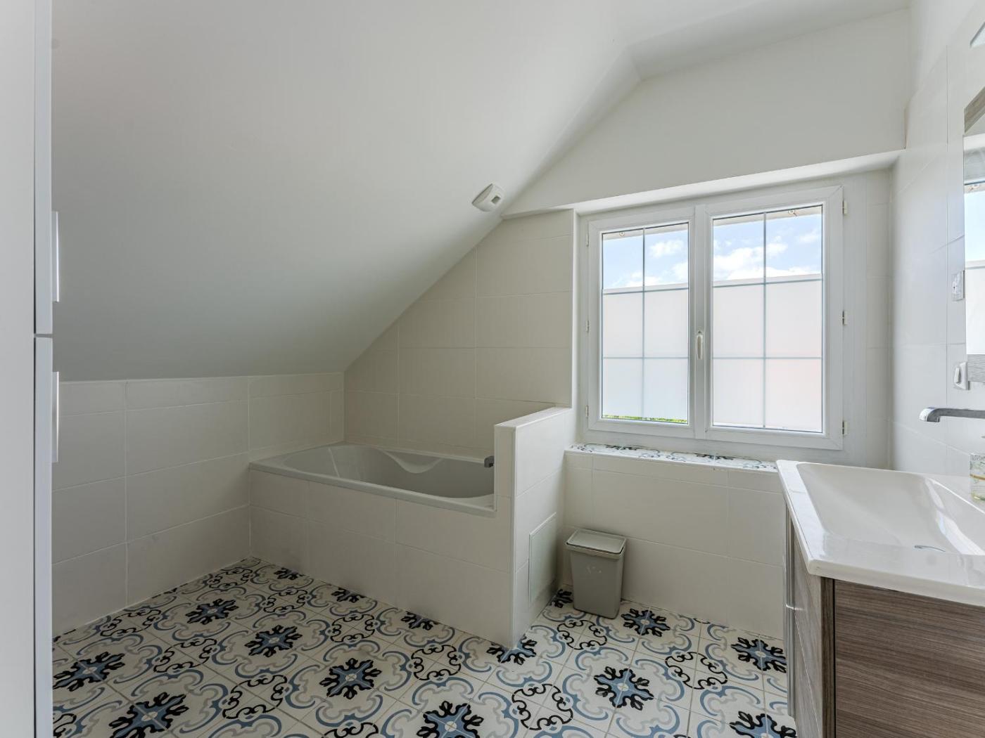 Cette maison de vacances comporte 5 chambres, une cuisine avec un réfrigérateur et un lave-vaisselle, ainsi que 2 salles de bains avec une douche et une baignoire. Une télévision est à disposition.