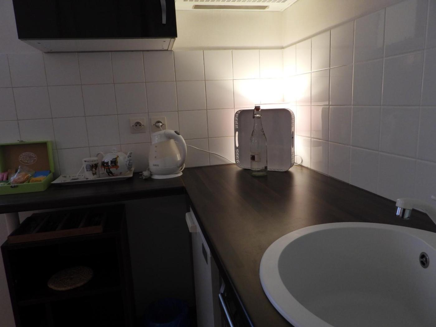Appartement avec Douche. Aménagée au 3ème étage et accessible uniquement par des escaliers, cette chambre dispose dune salle de bains privative pourvue d’une douche à litalienne. Le tarif inclut un petit-déjeuner bio.