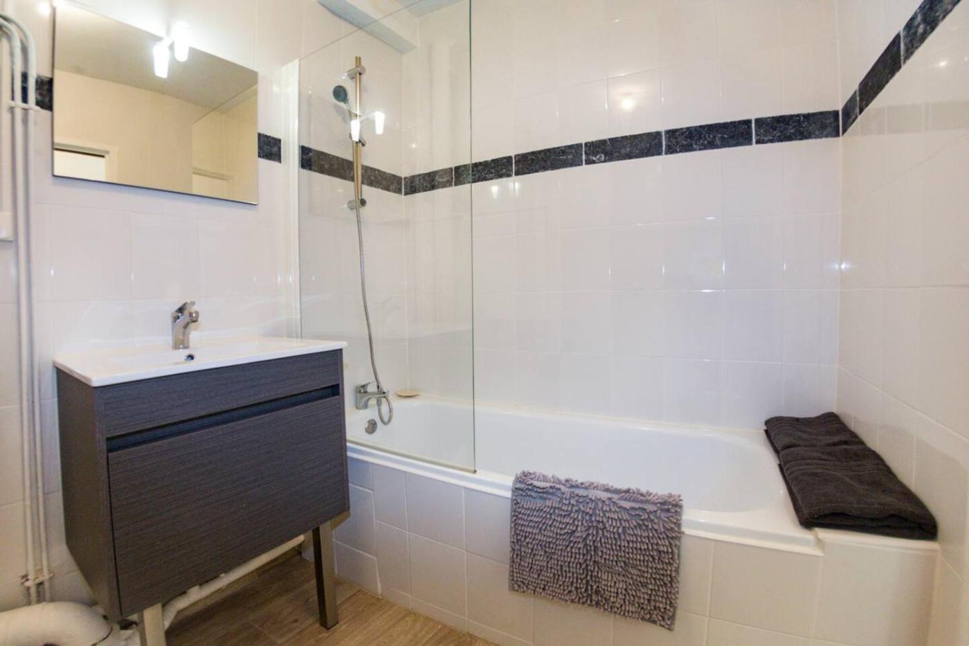 Appartement 1 Chambre. The well-equipped kitchen features a stovetop, a refrigerator, kitchenware and an oven. The air-conditioned apartment offers a flat-screen TV, a washing machine, a private entrance, a tea and coffee maker as well as city views. The unit offers 1 bed.