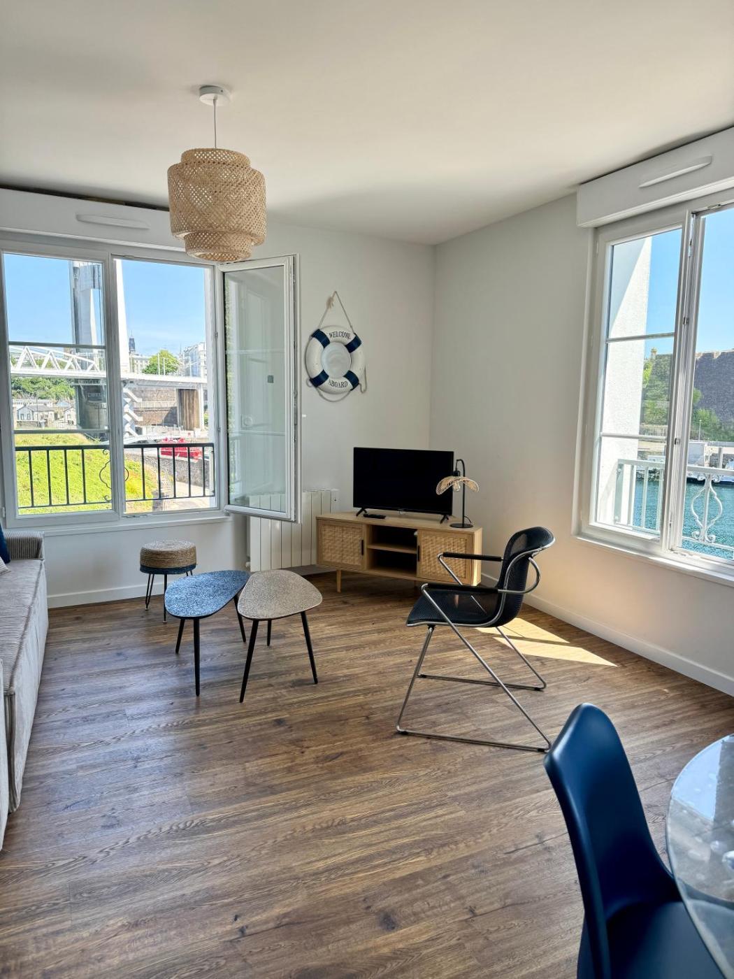 Appartement 1 Chambre. This apartment comes with 1 living room, 1 separate bedroom and 1 bathroom with a shower and free toiletries. Meals can be prepared in the kitchen, which features a stovetop, a refrigerator, a dishwasher and kitchenware. The apartment features a flat-screen TV with streaming services, a washing machine, a tea and coffee maker, a seating area as well as sea views. The unit has 2 beds.