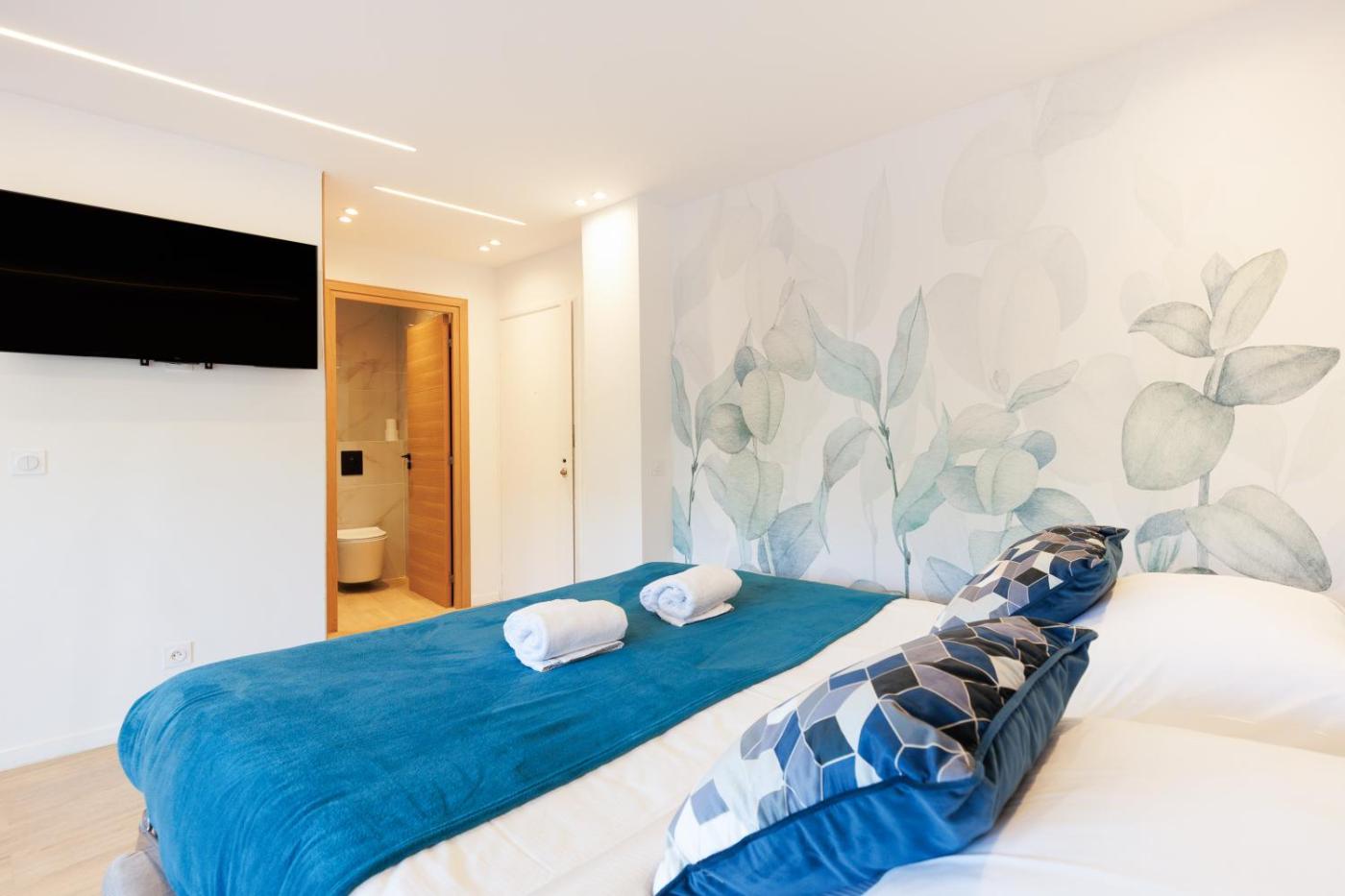 Comprenant un accès direct à un balcon, cet appartement avec climatisation comporte une cuisine entièrement équipée et une télévision à écran plat.