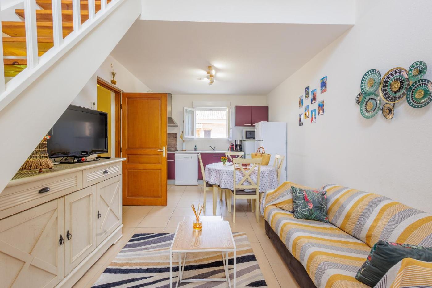 Maison 2 Chambres. This holiday home comprises 1 living room, 2 separate bedrooms and 1 bathroom with a shower and free toiletries. Meals can be prepared in the kitchen, which comes with a refrigerator, a dishwasher, kitchenware and a microwave. The air-conditioned holiday home provides a TV, a washing machine, a tea and coffee maker, a wardrobe as well as garden views. The unit offers 4 beds.