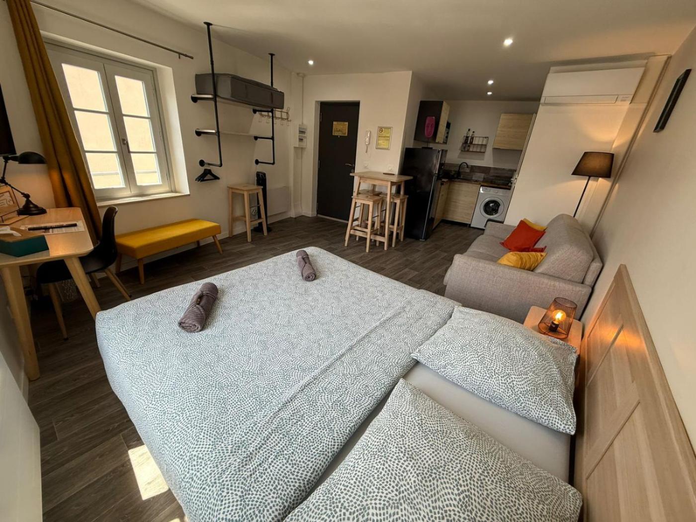 Studio Lit King-Size avec Canapé-Lit. The studio offers a sofa, heating, as well as a private bathroom boasting a shower and a hairdryer. In the fully equipped kitchen, guests will find a stovetop, a refrigerator, kitchenware and a microwave. This studio is air-conditioned and has a flat-screen TV with streaming services, a washing machine, a coffee machine and a wardrobe. The unit has 1 bed. ;