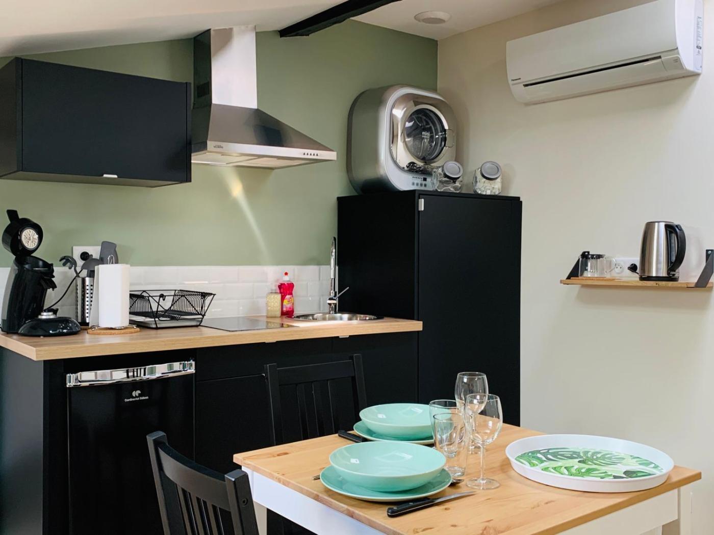 Appartement 1 Chambre. Guests can make meals in the kitchen that is equipped with a stovetop, a refrigerator, kitchenware and an oven. This apartment is air-conditioned and features a seating area with a flat-screen TV, a washing machine, a private entrance, soundproof walls, as well as a tea and coffee maker. The unit offers 2 beds.