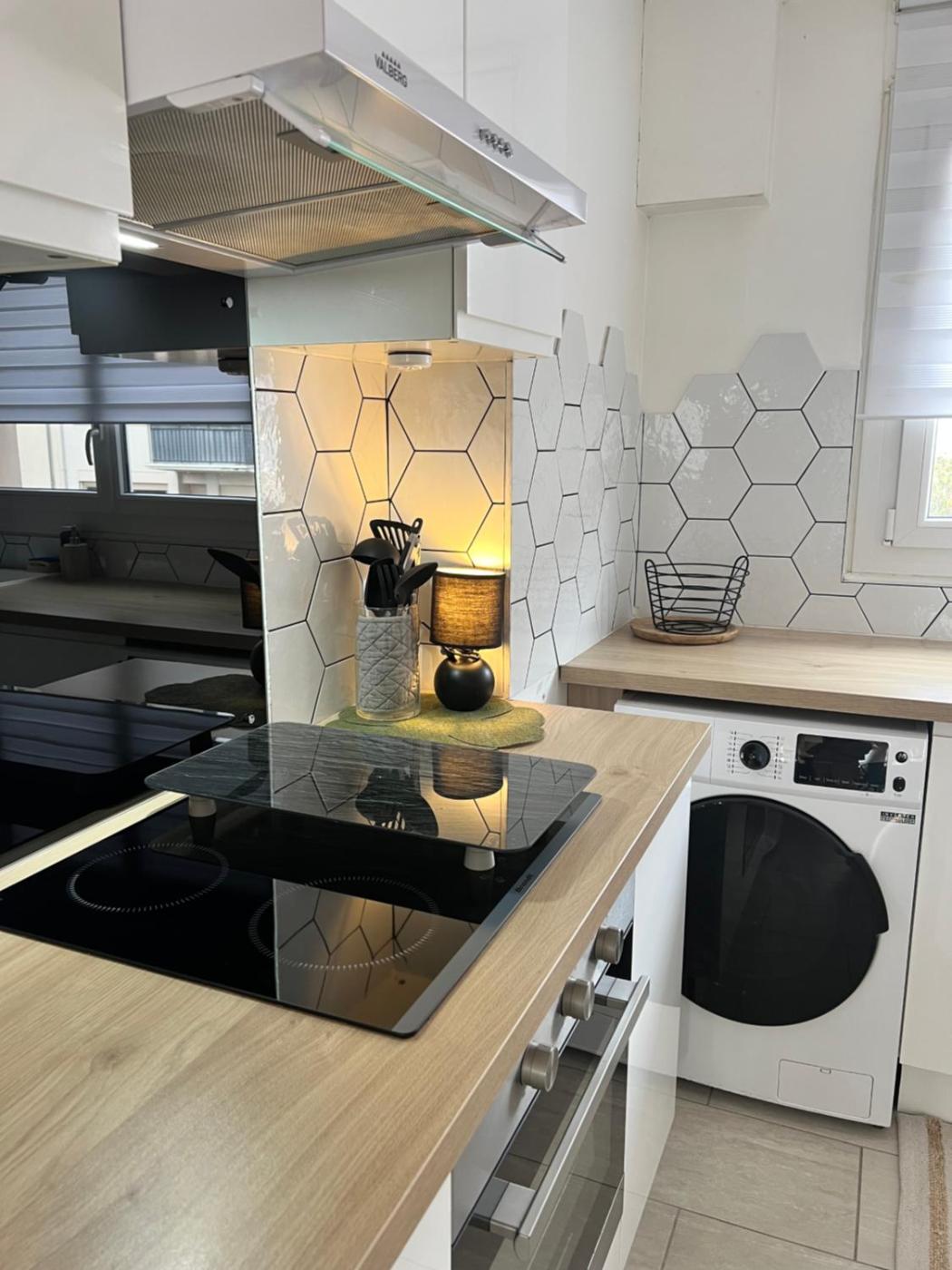 Appartement 2 Chambres. This apartment features 1 living room, 2 separate bedrooms and 1 bathroom with a bath and a hairdryer. Meals can be prepared in the kitchen, which has a stovetop, a refrigerator, a dishwasher and kitchenware. The apartment has parquet floors, a seating area with a flat-screen TV, a washing machine, a tea and coffee maker as well as city views. The unit has 3 beds.