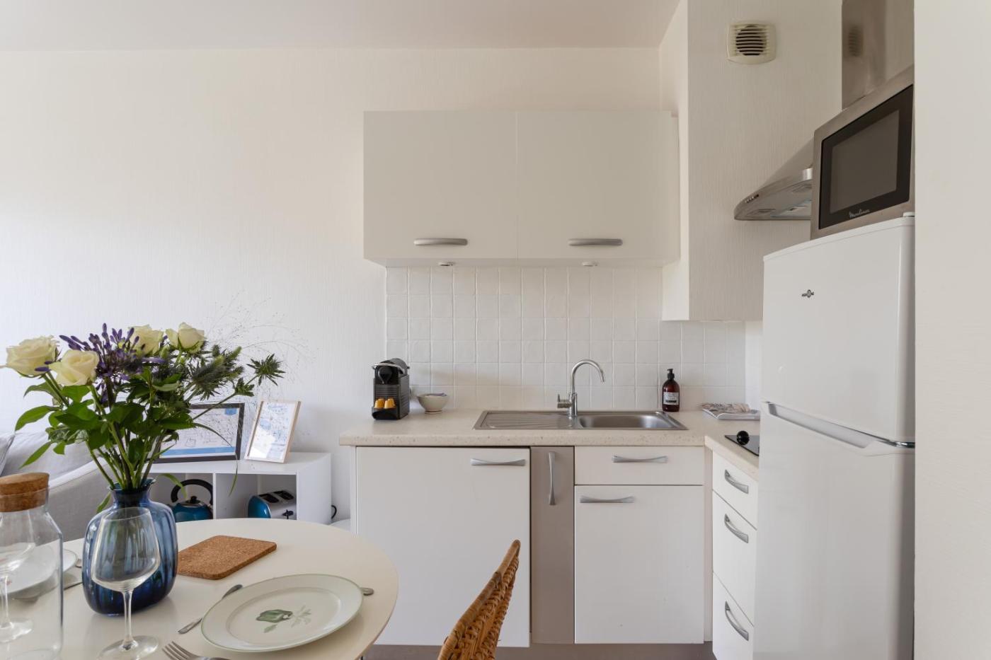 Appartement 1 Chambre. This apartment is comprised of 1 living room, 1 separate bedroom and 1 bathroom with a shower and free toiletries. The well-equipped kitchen features a refrigerator, kitchenware, a microwave and a toaster. Featuring a terrace, this apartment also offers a washing machine, a tea and coffee maker and a TV. The unit offers 2 beds.