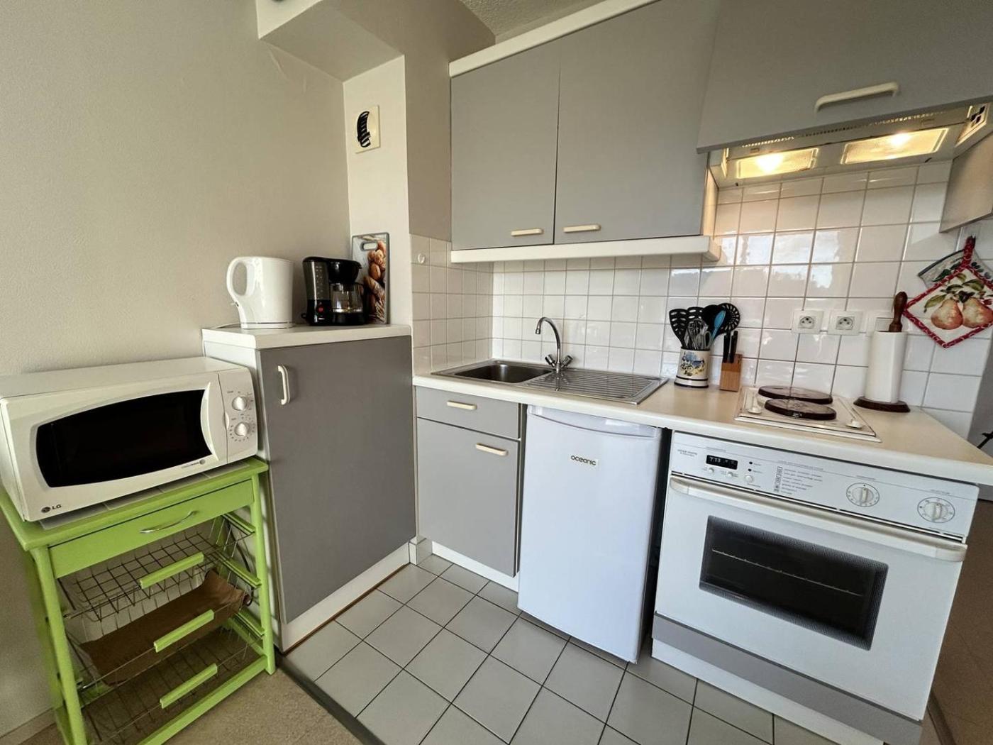 La kitchenette est pourvue d’un réfrigérateur, d’un four et d’un micro-ondes. Elle est également dotée d’une machine à café.
