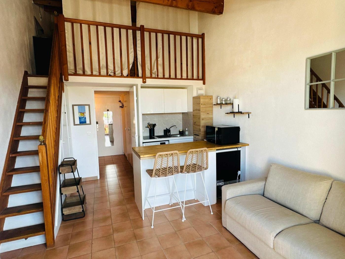 Cet appartement compte 1 chambre, un salon comportant une télévision, une cuisine entièrement équipée et 1 salle de bains.