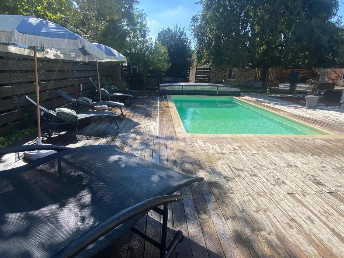 Maison 2 Chambres. The hot tub is the standout feature of this holiday home. Boasting a private entrance, this air-conditioned holiday home features 1 living room, 2 separate bedrooms and 1 bathroom with a walk-in shower and a hairdryer. Guests will find a stovetop, a refrigerator, kitchenware and an oven in the well-equipped kitchen. The holiday home also comes with a barbecue. Featuring a terrace with garden views, this holiday home also features a tea and coffee maker and a flat-screen TV with streaming services. The unit has 3 beds.