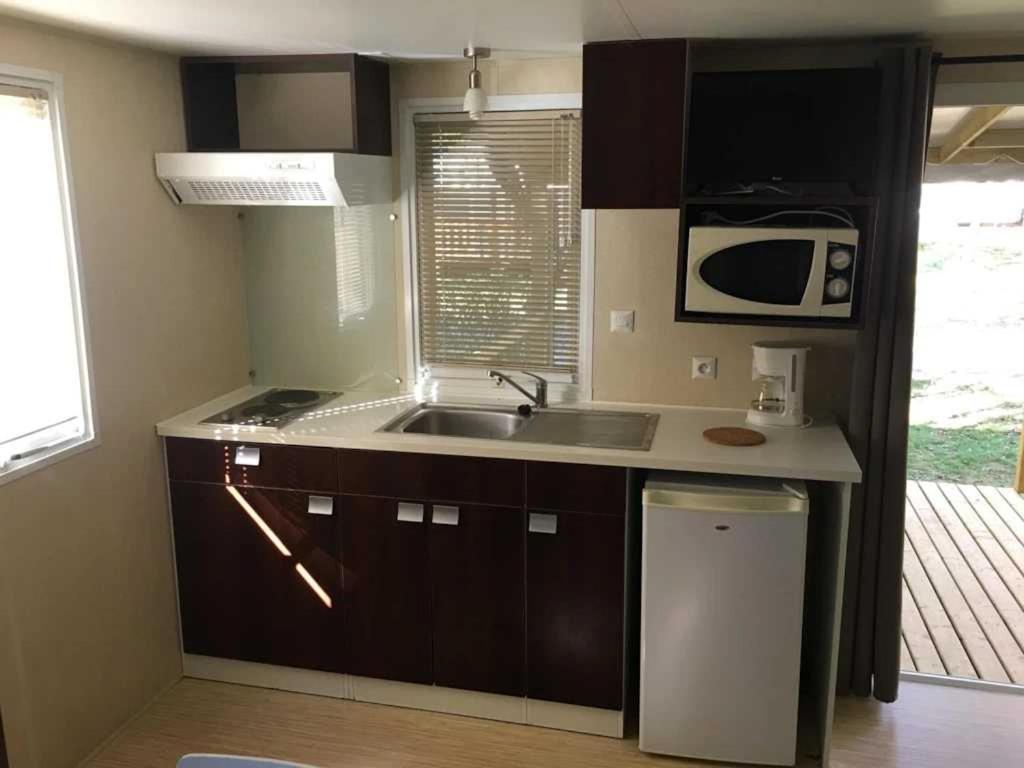 Mobile Home 3 Chambres. This mobile home comes with 3 bedrooms, kitchen, a terrace and 1 bathroom with a shower. In the well-fitted kitchen, guests will find a stovetop, a refrigerator, kitchenware and a microwave. This mobile home has air conditioning, a private entrance and a TV. The unit has 5 beds. ;