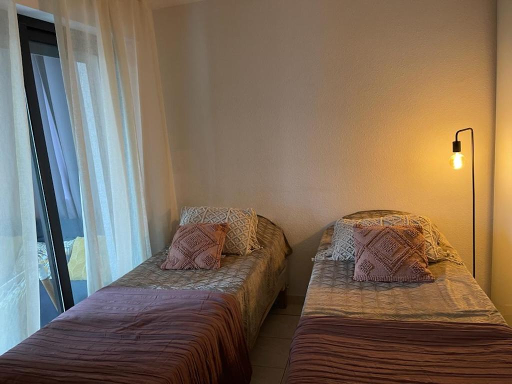 Appartement 3 Chambres. The air-conditioned apartment has 3 bedrooms and 1 bathroom with a walk-in shower and a hairdryer. Guests will find a stovetop, a refrigerator, a dishwasher and an oven in the fully equipped kitchen. The apartment also includes a barbecue. Boasting a balcony with garden views, this apartment also features a washing machine and a flat-screen TV. The unit has 4 beds.