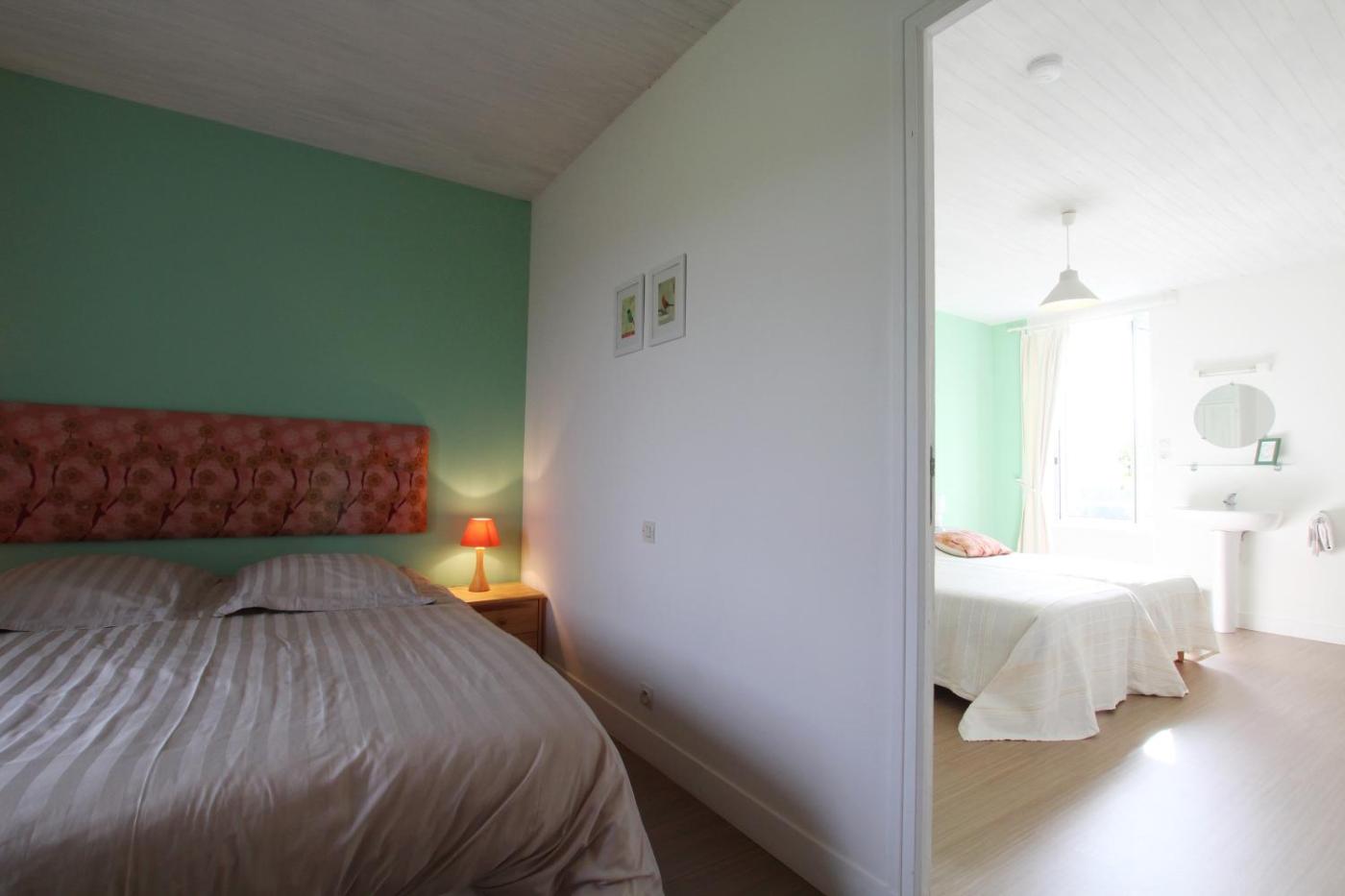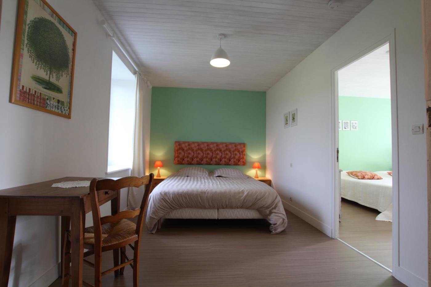 Chambre Quadruple - Vue sur Jardin. The quadruple room offers a private entrance, a dining area, as well as a private bathroom featuring a shower and a hairdryer. The quadruple rooms kitchenette, which has a refrigerator and kitchenware, is available for cooking and storing food. The quadruple room features a wardrobe, an outdoor dining area and garden views. The unit offers 2 beds. ;