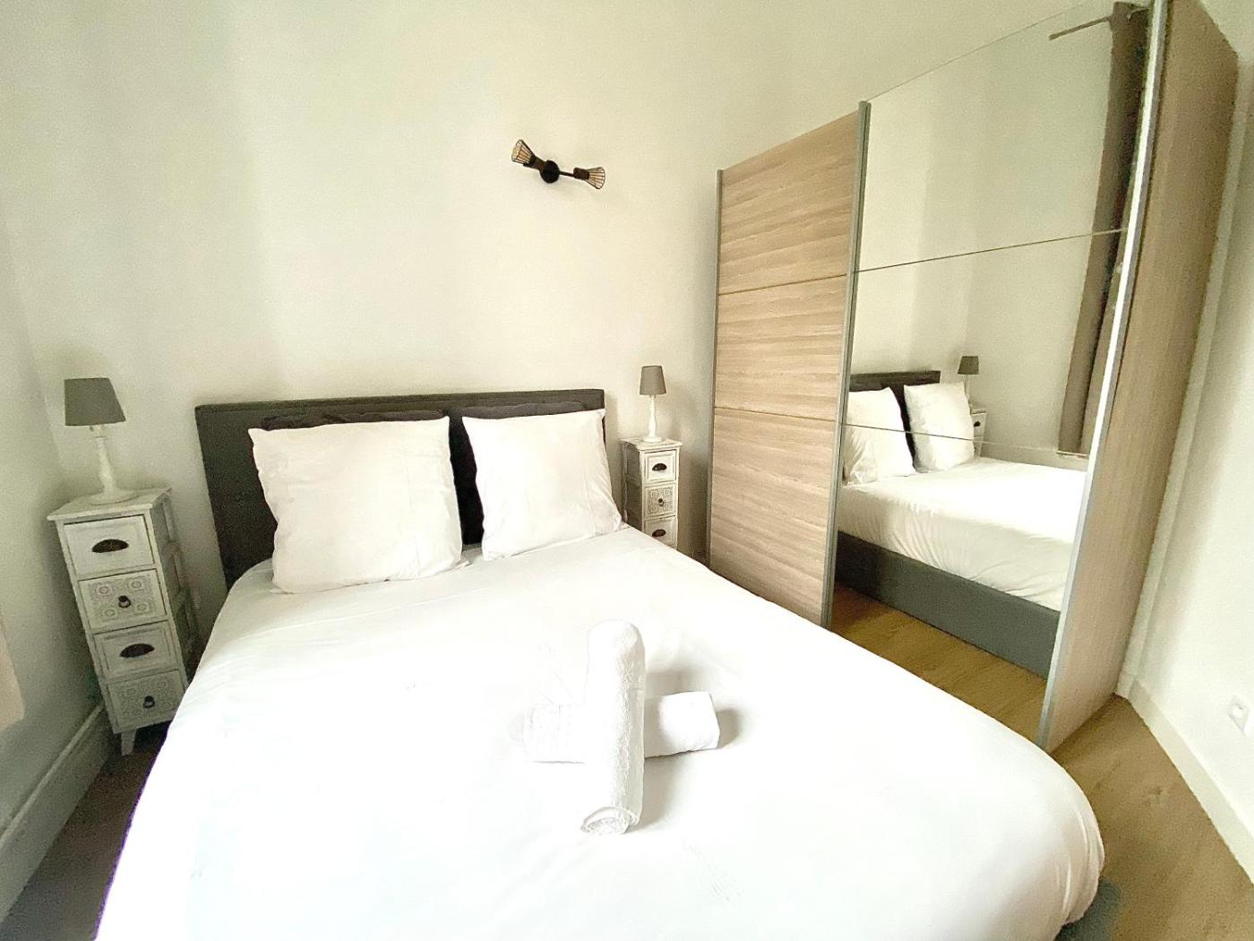 Appartement. This apartment features 1 living room, 1 separate bedroom and 1 bathroom with a bath or a shower and a hairdryer. In the kitchen, guests will find a stovetop, kitchenware, an oven and a microwave. This apartment has a washing machine, flat-screen TV with streaming services, city views, as well as chocolate for guests. The unit has 2 beds.