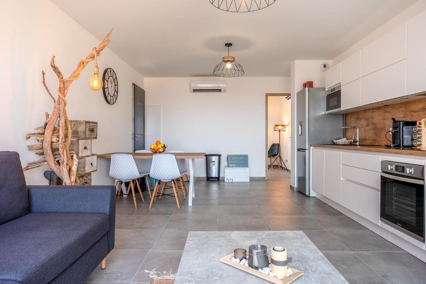 Appartement 2 Chambres. This spacious apartment consists of 1 living room, 2 separate bedrooms and 1 bathroom with a shower and a hairdryer. In the well-equipped kitchen, guests will find a refrigerator, a dishwasher, kitchenware and an oven. Featuring a terrace with sea views, this apartment also provides air conditioning and a TV. The unit offers 3 beds.