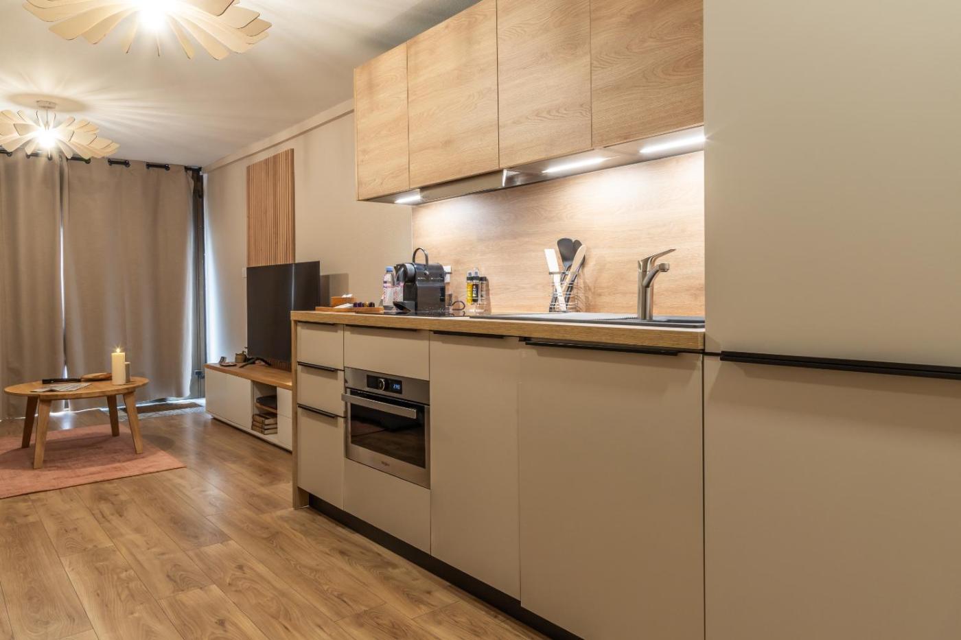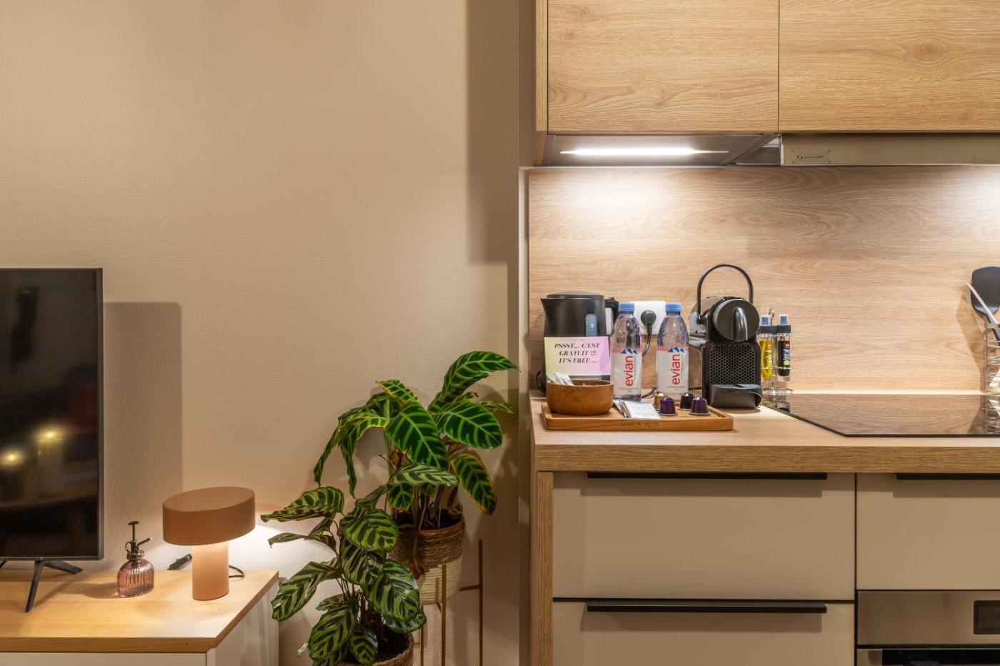 Suite - Vue sur Ville. This suite features 1 living room, 2 separate bedrooms and 1 bathroom with a walk-in shower and free toiletries. In the fully equipped kitchen, guests will find a refrigerator, a dishwasher, kitchenware and an oven. The air-conditioned suite features a flat-screen TV with streaming services, soundproof walls, a tea and coffee maker, a seating area as well as city views. The unit has 3 beds.