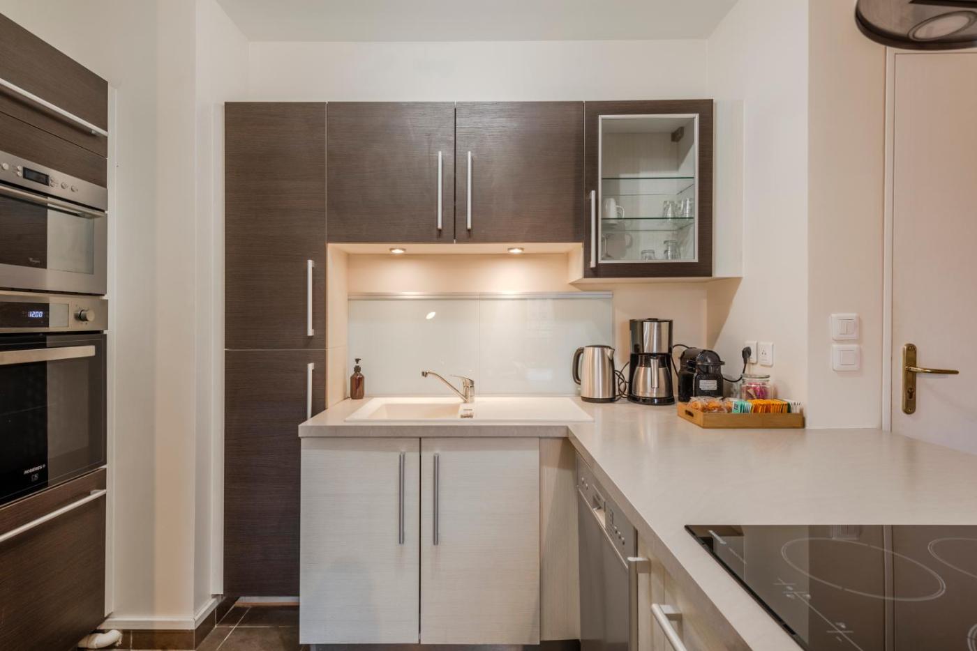 Appartement 2 Chambres. This apartment is comprised of 1 living room, 2 separate bedrooms and 1 bathroom with a walk-in shower and free toiletries. The well-equipped kitchen features a stovetop, a refrigerator, a dishwasher and kitchenware. This apartment has a washing machine, flat-screen TV, city views, as well as chocolate for guests. The unit offers 4 beds.