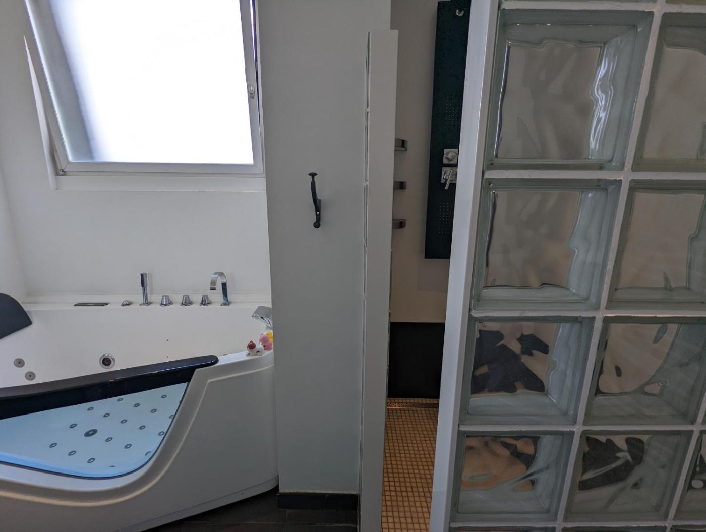 Appartement 1 Chambre Supérieur. The apartment "Chemin des Vignerons" is located in a quiet and family area. It is 1.4 km from the center of Metz and a 10-minute walk from the Center Pompidou, the Palais des Congrès de Metz, the Muse shopping center and the train station. It is also 20 km from Amnéville and its thermal baths. We offer you : - The 3-bedroom apartment (125 m²). It has free Wi-Fi, wooden floors, exposed beams and satellite TV. The bathroom is equipped with a walk-in shower, a large bathtub and there is a separate toilet. Sheets and towels are provided. The open-plan kitchen is equipped with a dishwasher, hotplates and an oven. A microwave, kitchenware and a Senseo coffee machine are also available. On request, you can also use the on-site fitness equipment and the sauna (on the ground floor of the house). Free parking is available on site. The owners live in the same building (1st floor). - The studio: 37m². Equipped kitchen, living room-bedroom (bed that fits in the closet), bathroom-wc (shower). ;
