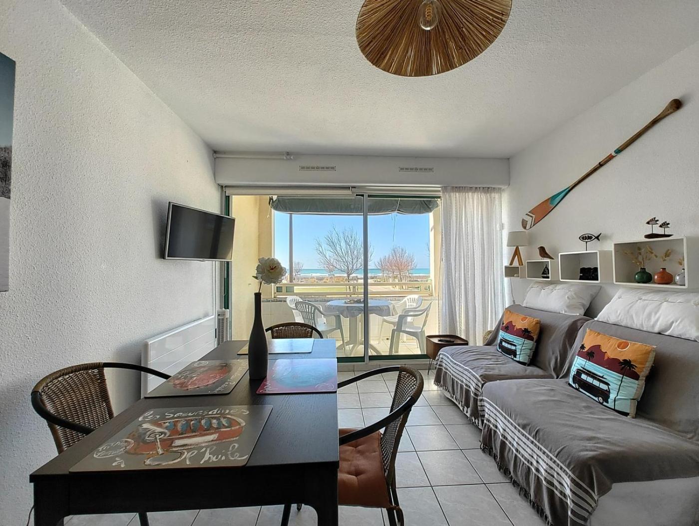 Appartement 1 Chambre. Featuring a private entrance, this apartment consists of 1 living room, 1 separate bedroom and 1 bathroom with a bath or a shower and a hairdryer. The fully equipped kitchen features a stovetop, a refrigerator, a dishwasher and kitchenware. Boasting a terrace with sea views, this apartment also provides a washing machine and a flat-screen TV. The unit offers 2 beds.