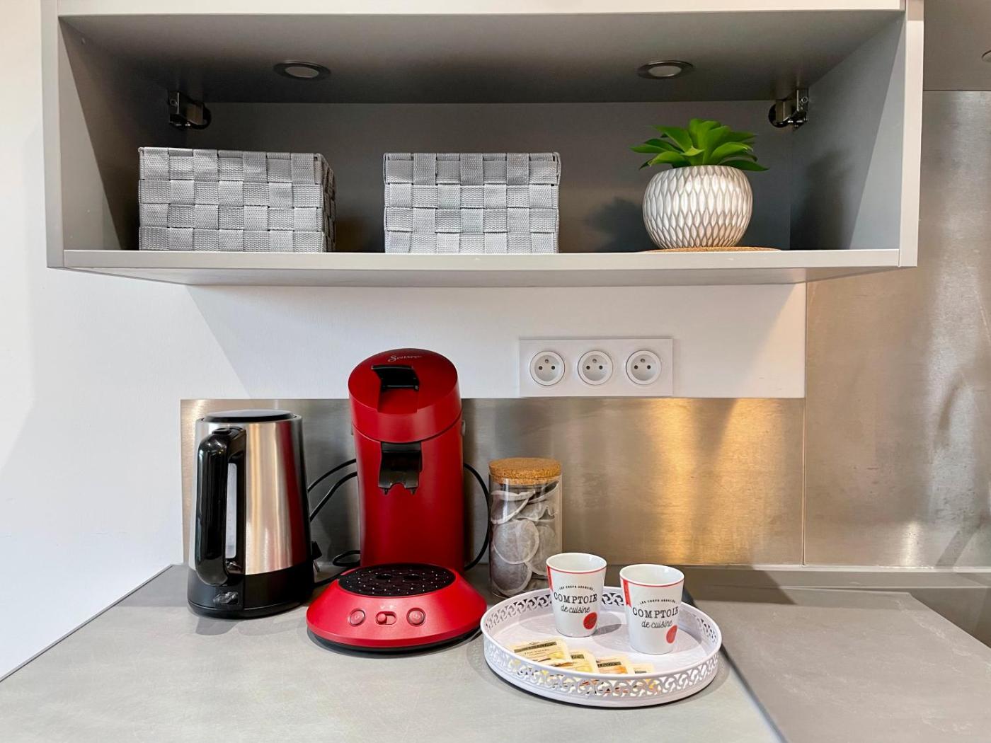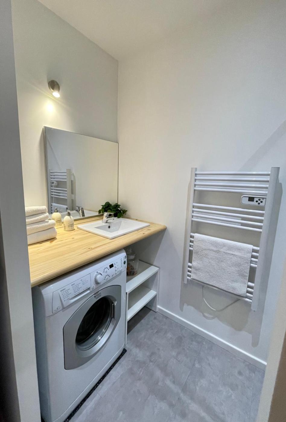 Appartement 1 Chambre. The air-conditioned apartment has 1 bedroom and 1 bathroom with a walk-in shower and a hairdryer. In the fully equipped kitchen, guests will find a stovetop, a refrigerator, kitchenware and a microwave. The apartment offers a flat-screen TV, a washing machine, soundproof walls, a tea and coffee maker as well as city views. The unit has 1 bed.