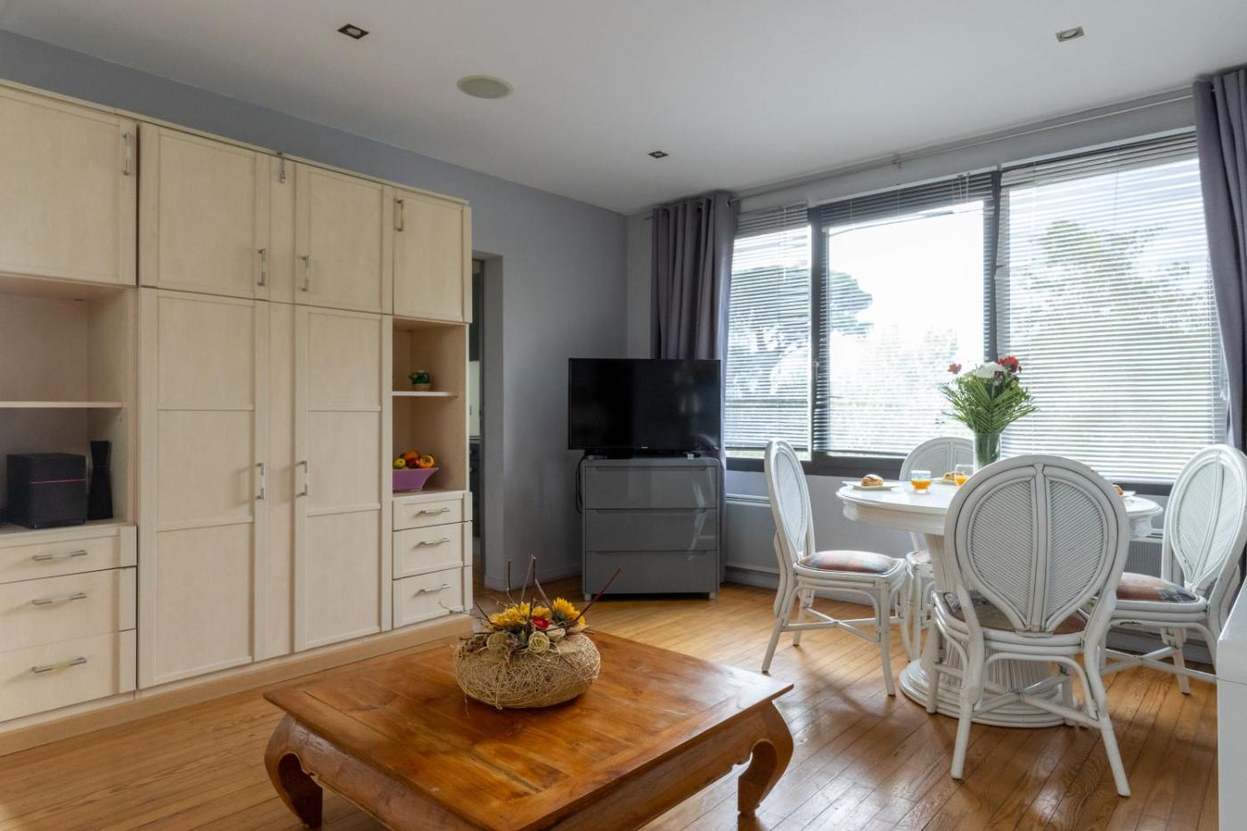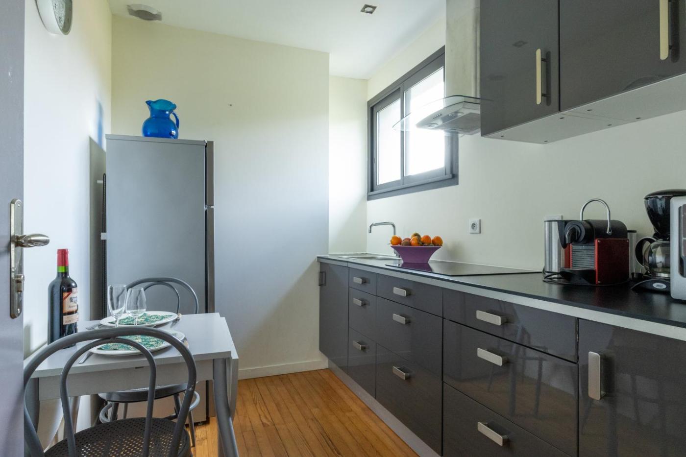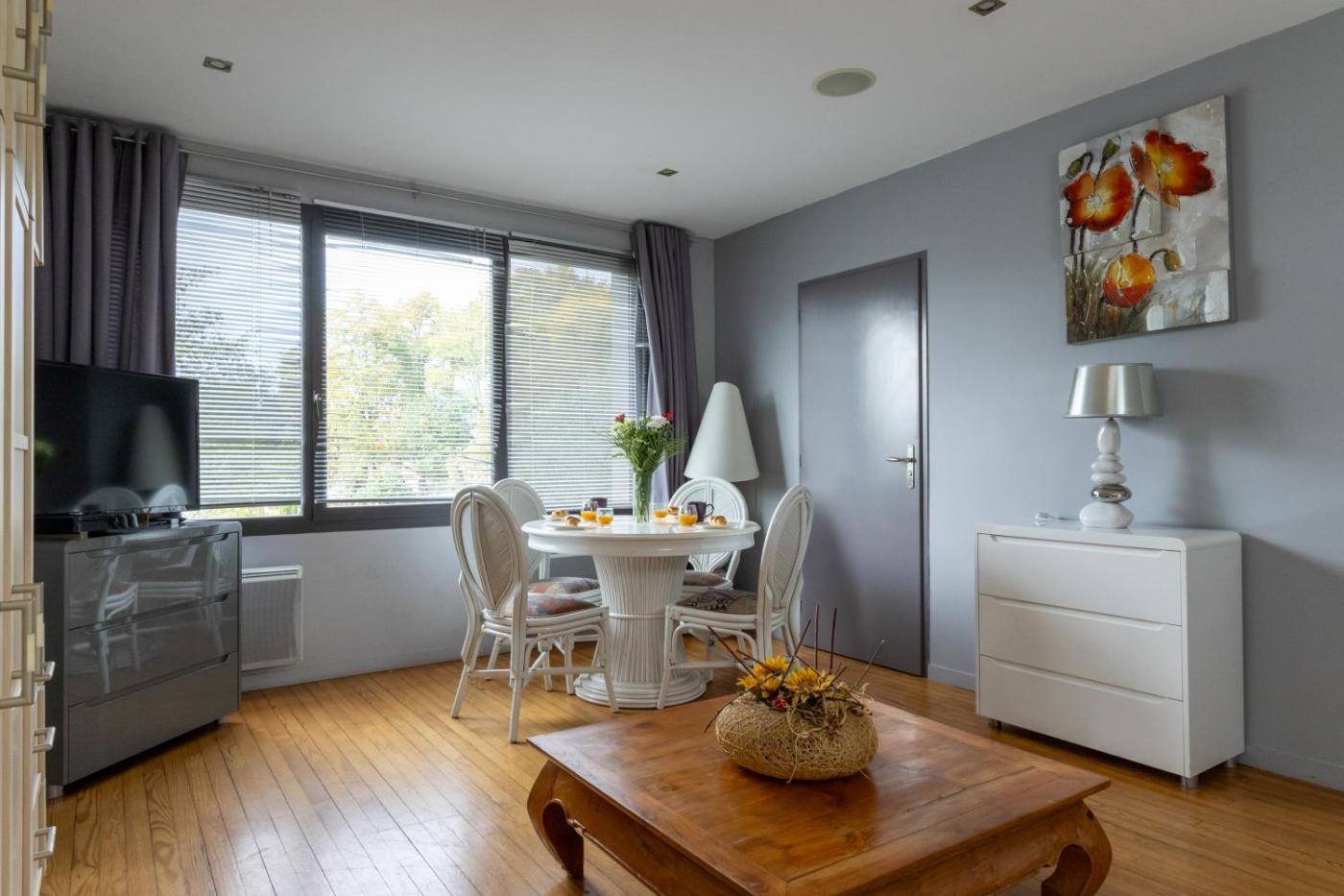 Appartement - Vue sur Jardin. Featuring a private entrance, this spacious apartment also comprises 2 bedrooms, a seating area and 1 bathroom with a shower and a hairdryer. Meals can be prepared in the well-fitted kitchen, which comes with a stovetop, a refrigerator, kitchenware and a microwave. The air-conditioned apartment provides a flat-screen TV with cable channels, a tea and coffee maker, a dining area, a wardrobe as well as garden views. The unit offers 2 beds.