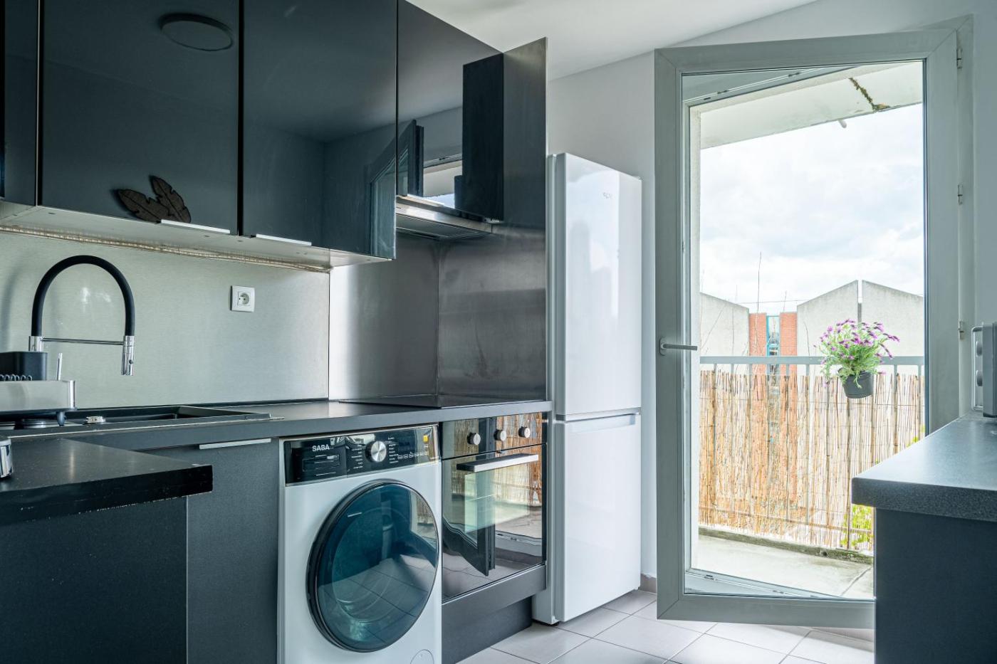 Appartement 1 Chambre. This apartment comes with 1 living room, 1 separate bedroom and 1 bathroom with a walk-in shower and a hairdryer. The apartments kitchen is available for cooking and storing food. The apartment has parquet floors, a seating area with a flat-screen TV, a washing machine, soundproof walls as well as city views. The unit has 2 beds.