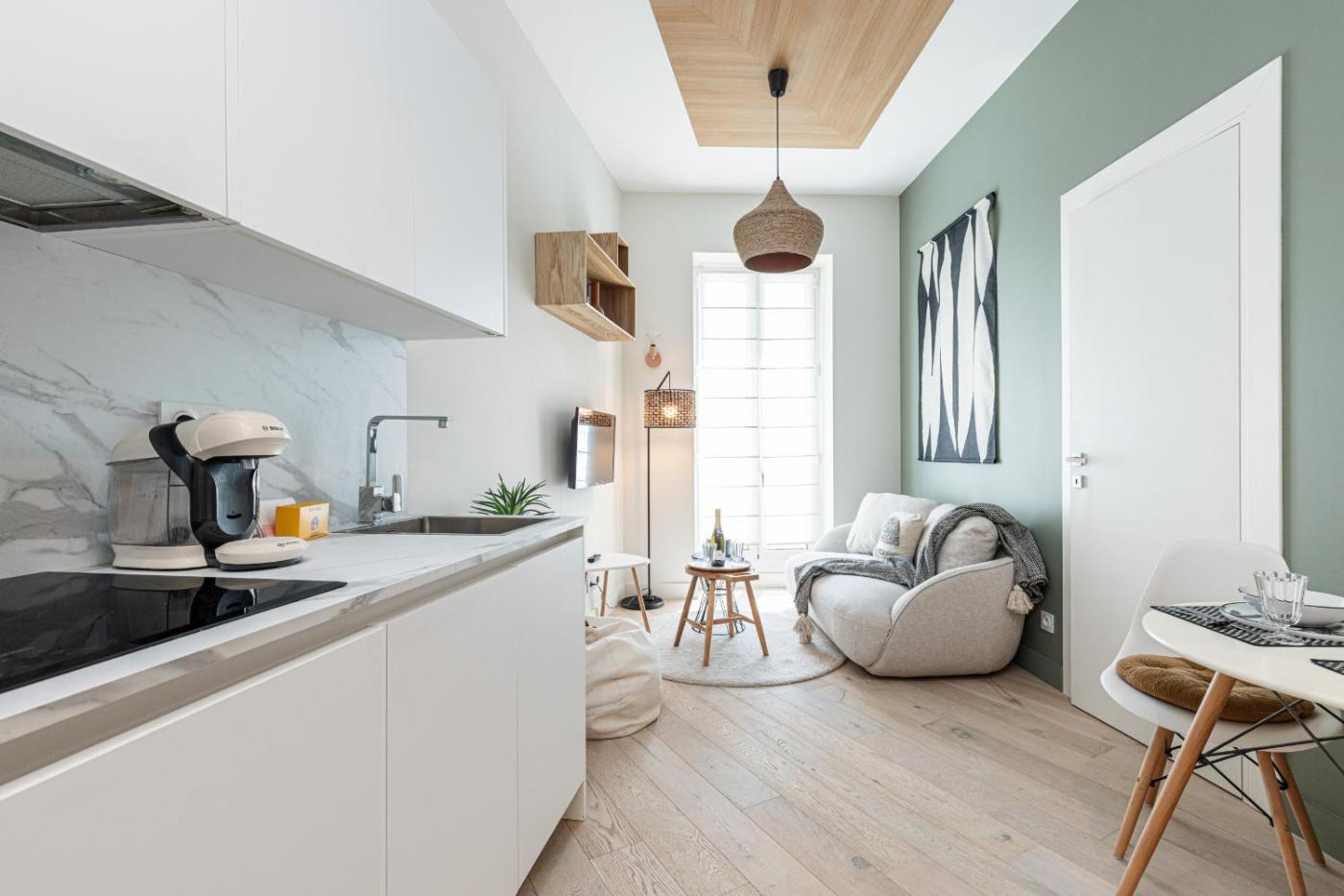 Appartement 1 Chambre. The air-conditioned apartment features 1 bedroom and 1 bathroom with a shower and a hairdryer. The fully equipped kitchen has a refrigerator, a dishwasher, kitchenware and a microwave. The apartment provides a washing machine, a tea and coffee maker, a seating area, a dining area and a flat-screen TV. The unit offers 1 bed.