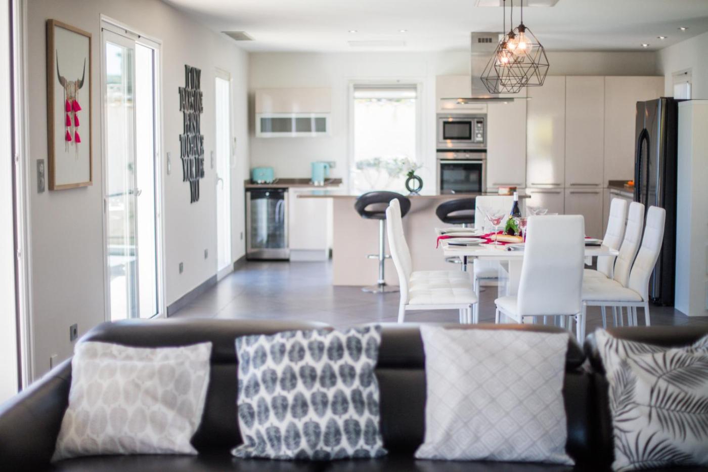 Villa avec Piscine Privée. This villas special feature is the pool with a view. Featuring a private entrance, this air-conditioned villa consists of 3 bedrooms and 2 bathrooms with a bath. Guests will find a stovetop, a refrigerator, a dishwasher and kitchenware in the well-fitted kitchen. The villa also offers a barbecue. Boasting a terrace with sea views, this villa also provides a washing machine and a TV. The unit offers 3 beds.