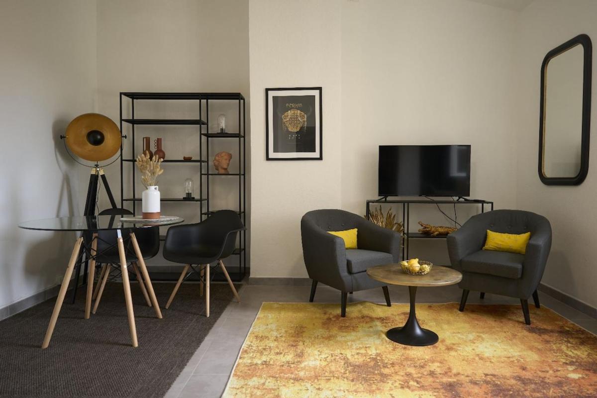 Appartement 1 Chambre. Guests can make meals in the kitchen that has a stovetop, a refrigerator, kitchenware and a microwave. The apartment features a washing machine, a tea and coffee maker, a seating area, a flat-screen TV, as well as city views. The unit has 1 bed.