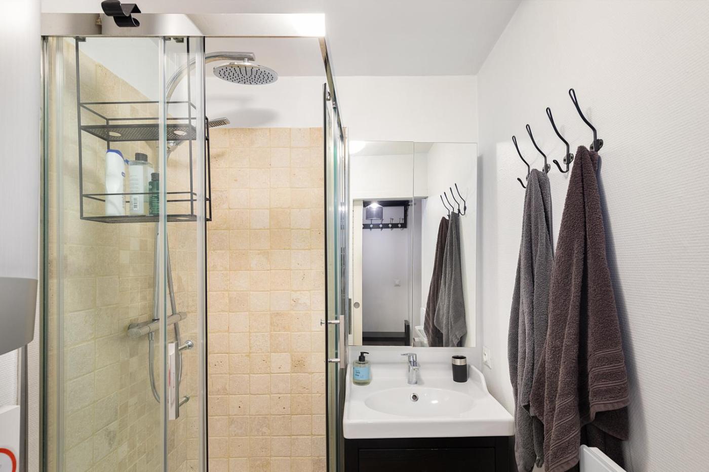 Appartement 1 Chambre. This apartment comes with a kitchen, a seating area, 1 separate bedroom and 1 bathroom with a shower and a hairdryer. Guests can make meals in the kitchen that features a stovetop, a refrigerator, a dishwasher and kitchenware. The apartment features a washing machine, soundproof walls, a tea and coffee maker, a flat-screen TV with streaming services, as well as city views. The unit has 1 bed.