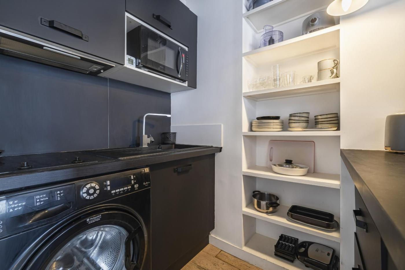 Appartement 1 Chambre Deluxe. This apartment comes with 1 bedroom, a kitchen and 2 bathrooms with a shower and a hairdryer. Meals can be prepared in the well-fitted kitchen, which features a refrigerator, kitchenware, a microwave and a tea and coffee maker. This apartment has a washing machine, heating and a TV. The unit has 1 bed.