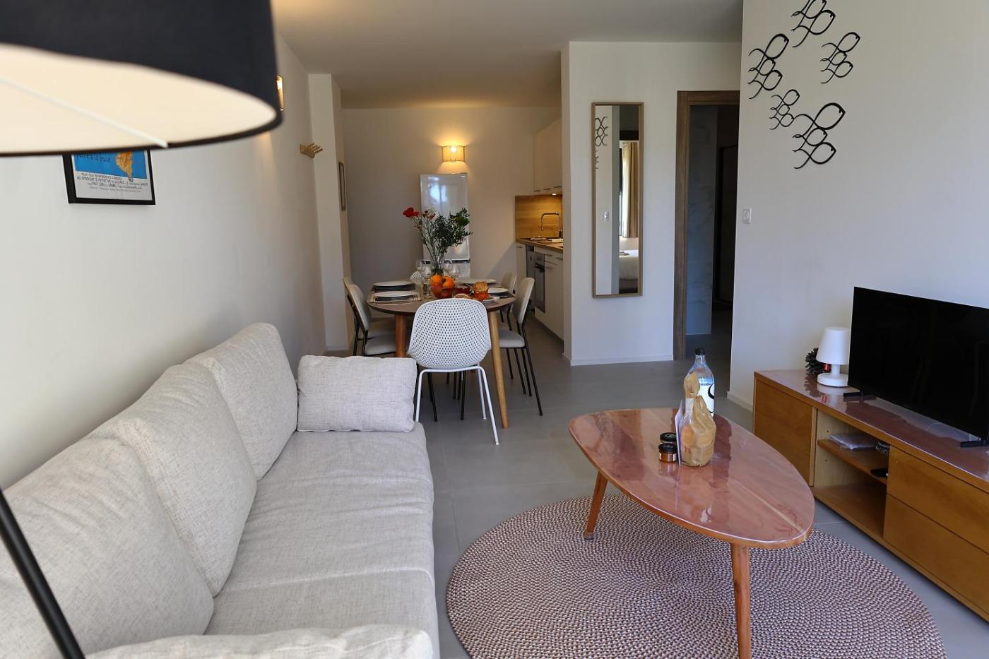 Appartement 1 Chambre - Vue sur Mer. Guests will have a special experience as this apartment features a pool with a view. Featuring a private entrance, this air-conditioned apartment is comprised of 1 living room, 1 separate bedroom and 1 bathroom with a walk-in shower and a hairdryer. In the fully equipped kitchen, guests will find a stovetop, a refrigerator, a dishwasher and kitchenware. Boasting a terrace with sea views, this apartment also offers a washing machine and a flat-screen TV. The unit offers 2 beds.