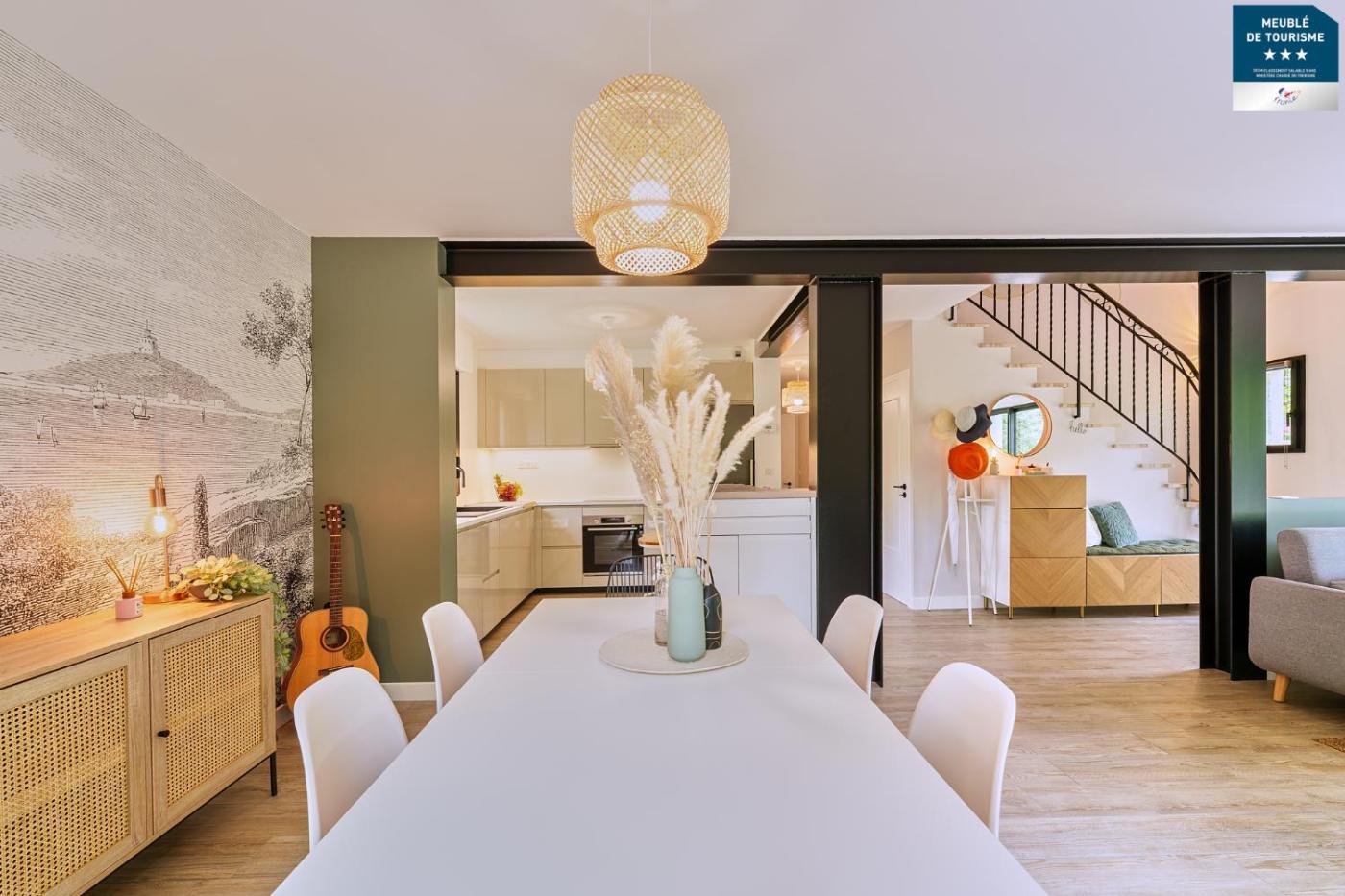 Maison 3 Chambres. Boasting a private entrance, this holiday home comes with 2 living rooms, 3 separate bedrooms and 2 bathrooms with a shower and a bidet. Guests will find a stovetop, a refrigerator, a dishwasher and kitchenware in the well-equipped kitchen. The holiday home also includes a barbecue. Featuring a terrace with garden views, this holiday home also features a washing machine and a flat-screen TV with streaming services. The unit has 3 beds.