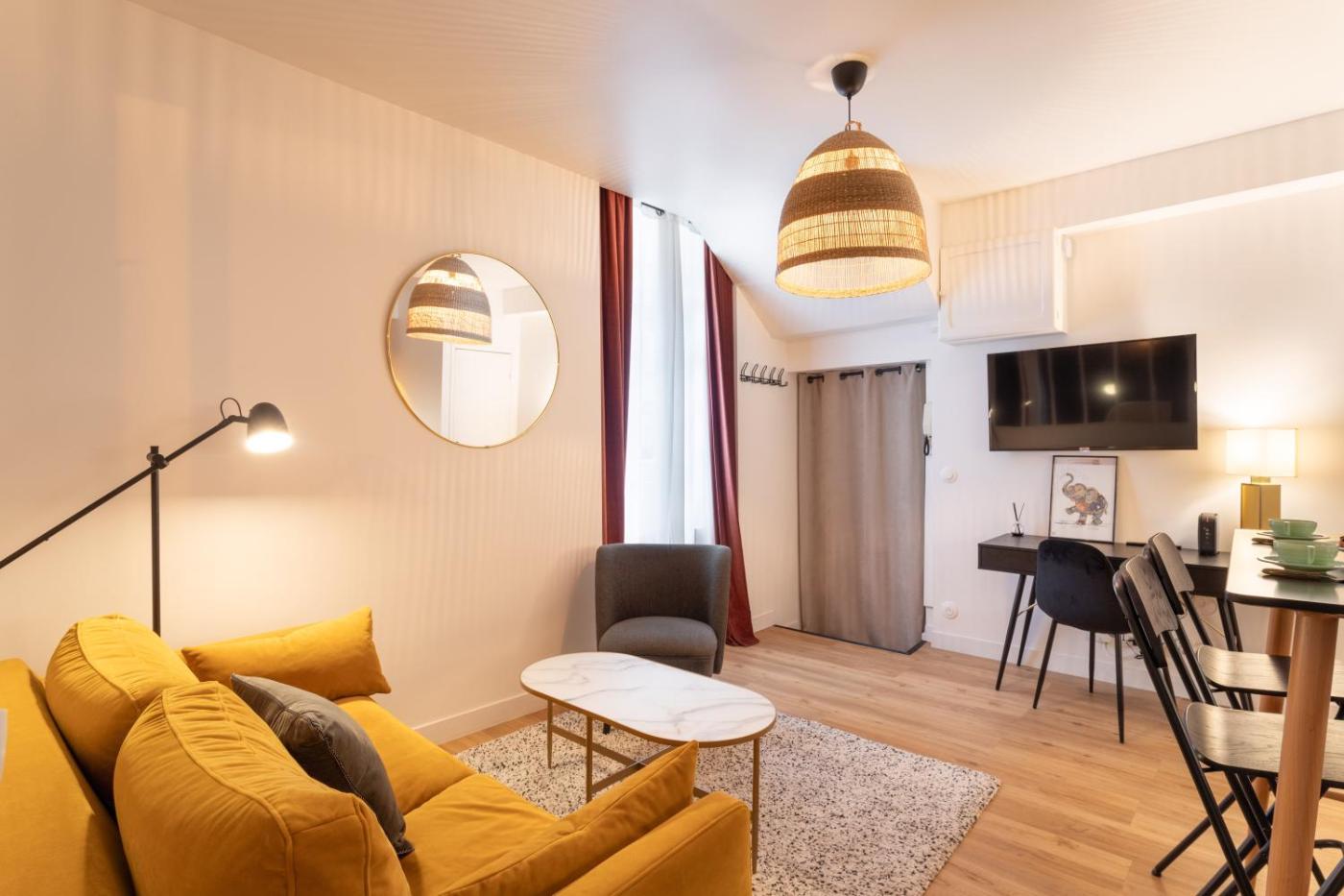 Appartement 1 Chambre. This apartment comes with 1 living room, 1 separate bedroom and 1 bathroom with a shower and free toiletries. In the kitchen, guests will find a refrigerator, a dishwasher, kitchenware and an oven. The apartment features a washing machine, a tea and coffee maker, a wardrobe, tumble dryer and a TV. The unit has 2 beds.