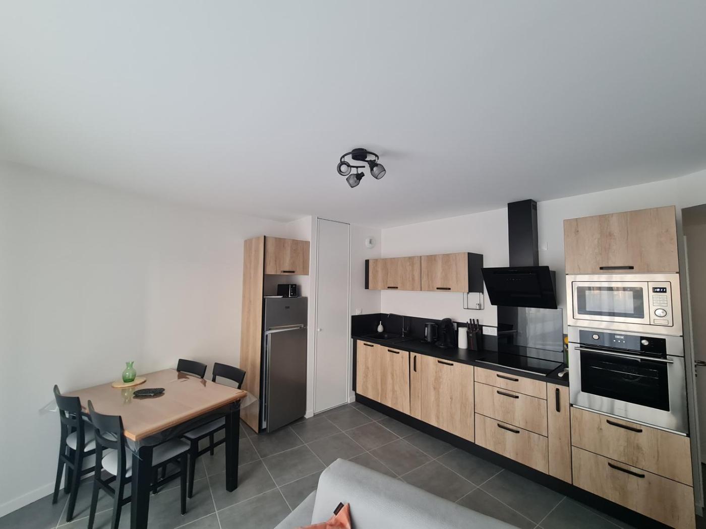Appartement 1 Chambre. The well-equipped kitchen has a stovetop, a refrigerator, a dishwasher and kitchenware. This wheelchair accessible apartment features a washing machine, a seating area with a flat-screen TV and a shower chair. The unit offers 2 beds.