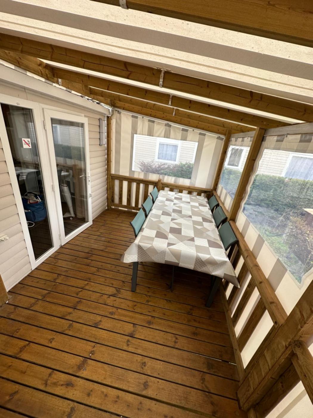 Mobile Home. This mobile homes special features are the hot tub and the sauna. Boasting a private entrance, this mobile home comes with 1 living room, 3 separate bedrooms and 1 bathroom with a shower and a hairdryer. Guests will find a stovetop, a refrigerator, a dishwasher and kitchenware in the fully equipped kitchen. The mobile home also includes a barbecue. This mobile home has a washing machine, a tea and coffee maker, a flat-screen TV and a terrace. The unit has 6 beds.