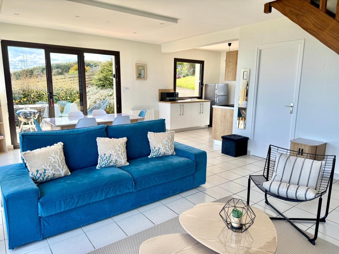 Maison de Vacances 3 Chambres. Featuring a private entrance, this holiday home consists of 1 living room, 3 separate bedrooms and 1 bathroom with a walk-in shower and a hairdryer. Guests will find a stovetop, a refrigerator, a dishwasher and kitchenware in the kitchen. The holiday home also offers a barbecue. Boasting a terrace with sea views, this holiday home also provides a washing machine and a flat-screen TV with cable channels. The unit offers 4 beds.