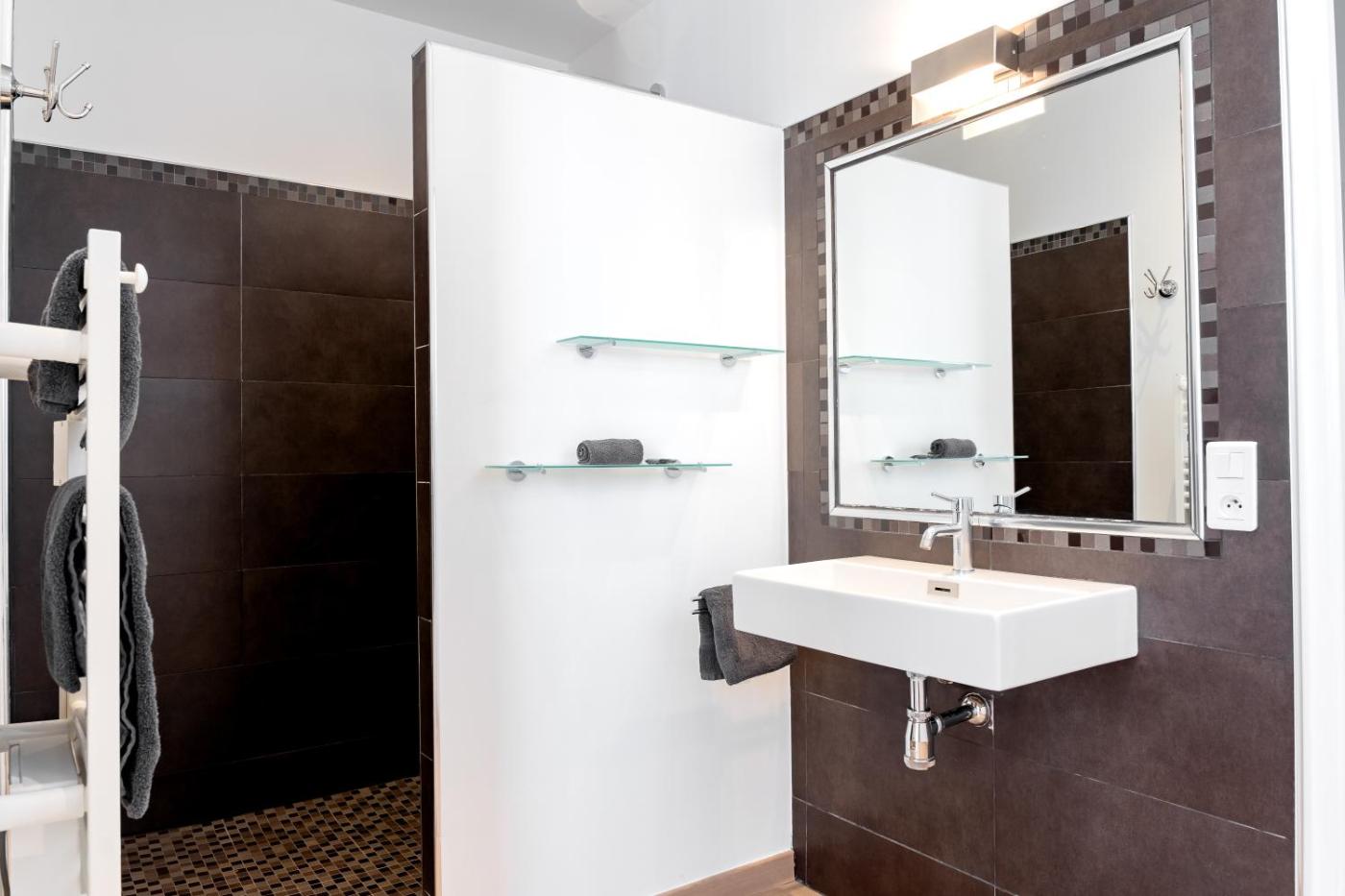 Appartement Supérieur. This air-conditioned apartment comprises 1 living room, 1 separate bedroom and 1 bathroom with a shower. The fully equipped kitchen features a stovetop, a refrigerator, a dishwasher and kitchenware. The apartment has parquet floors, a seating area with a flat-screen TV, a washing machine, a coffee machine, as well as a dining area. The unit offers 1 bed.