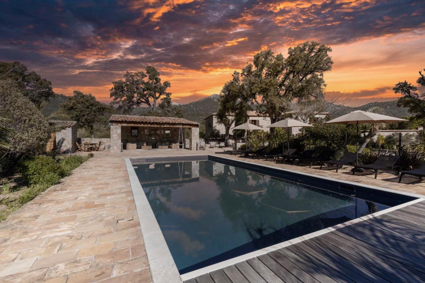 Suite. Cette suite possède une piscine avec vue. Cette suite climatisée dispose d’une télévision par satellite à écran plat, d’une salle de bains privative et d’une terrasse avec vue sur le jardin. Ce logement comprend 3 lits. ;