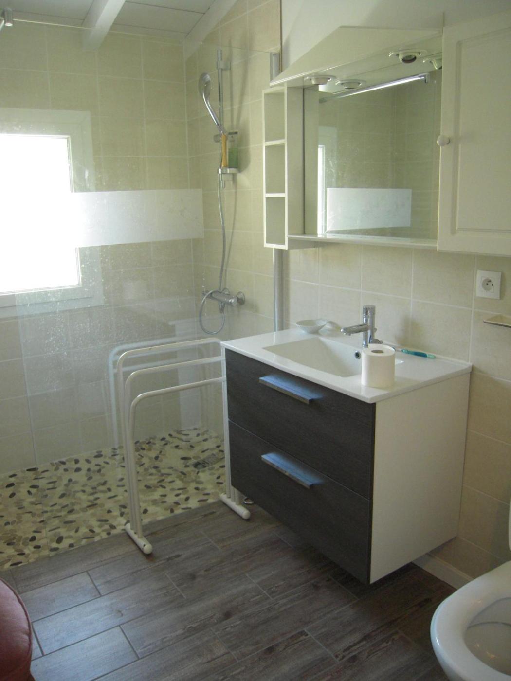 Chambre Double avec Salle de Bains Privative. The double room features a private entrance, a tea and coffee maker, as well as a private bathroom boasting a shower and a hairdryer. Featuring a terrace, this double room also offers a dining area, a wardrobe and a flat-screen TV. The unit has 1 bed.