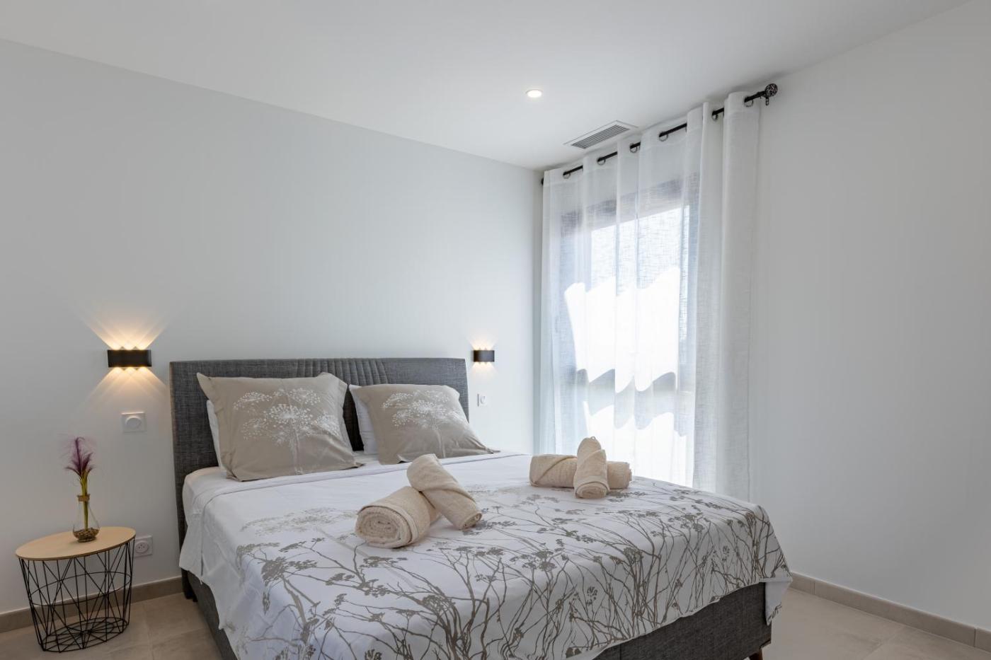 Cette villa avec climatisation se compose de 4 chambres, dun salon, dune cuisine entièrement équipée avec un réfrigérateur et une machine à café, ainsi que de 3 salles de bains avec un bidet et une douche. Des serviettes et du linge de lit sont disponibles.