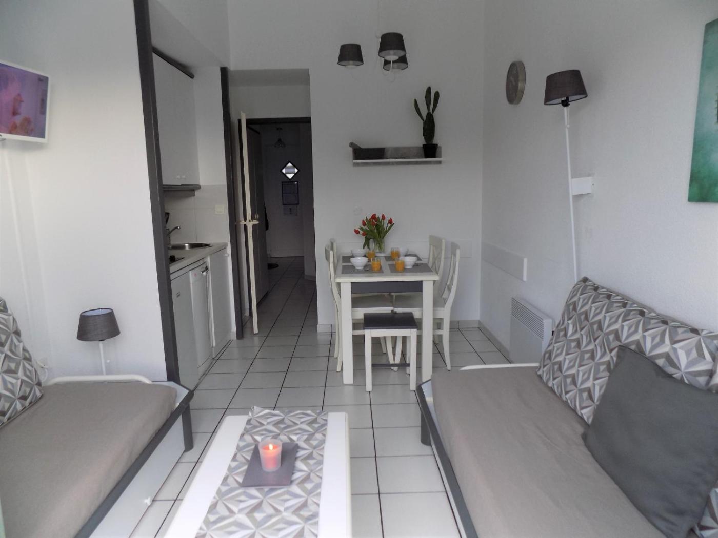 Appartement 1 Chambre. This apartments special feature is the private pool. Featuring a private entrance, this apartment consists of 1 living room, 1 separate bedroom and 1 bathroom with a bath or a shower and a hairdryer. The well-fitted kitchen features a stovetop, a refrigerator, a dishwasher and kitchenware. Boasting a terrace with lake views, this apartment also provides a tea and coffee maker and a flat-screen TV. The unit offers 4 beds.
