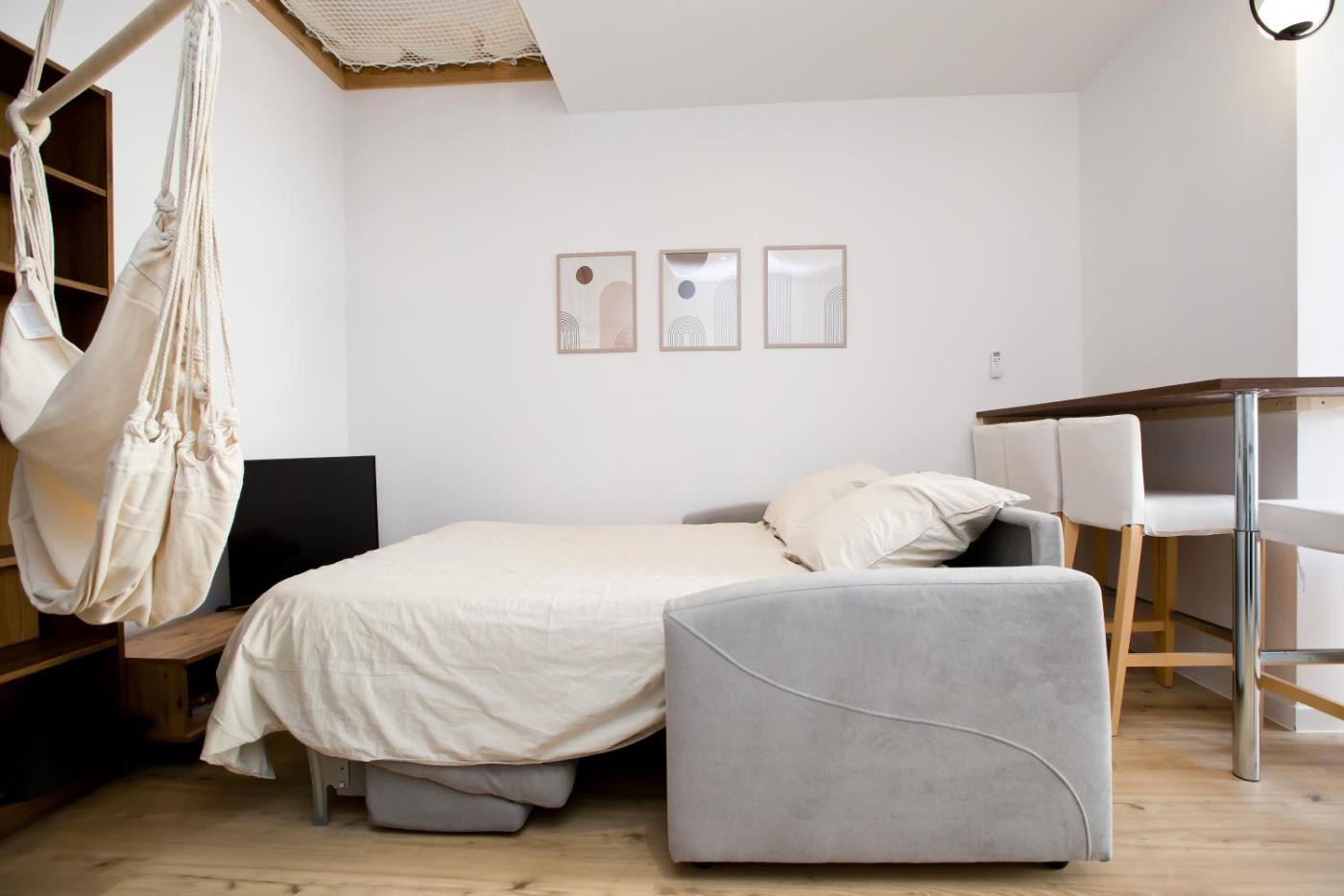Cet appartement avec climatisation se compose de 1 chambre, dun salon, dune cuisine entièrement équipée avec un réfrigérateur et une machine à café, ainsi que de 1 salle de bains avec une douche et des articles de toilette gratuits. Des serviettes et du linge de lit sont à disposition.