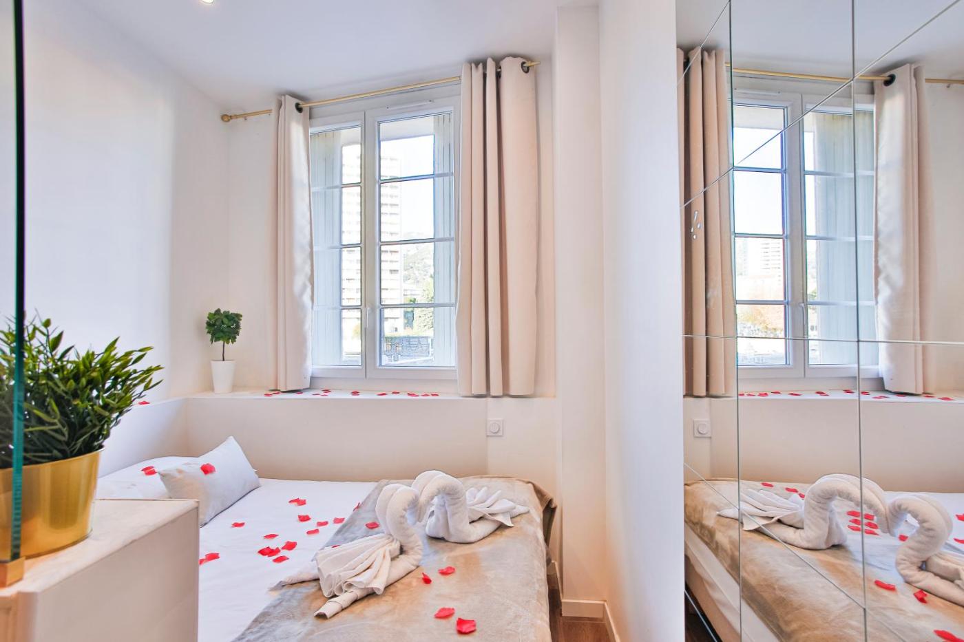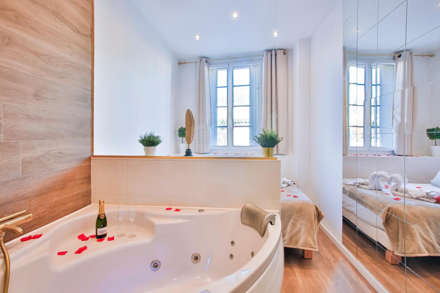 Appartement Supérieur. Guests will have a special experience as this apartment provides a hot tub and a spa bath. This air-conditioned apartment consists of 1 living room, 1 separate bedroom and 1 bathroom with a hairdryer. In the fully equipped kitchen, guests will find a stovetop, a refrigerator, kitchenware and a microwave. This apartment features a washing machine, flat-screen TV, city views, as well as winechampagne for guests. The unit offers 2 beds.