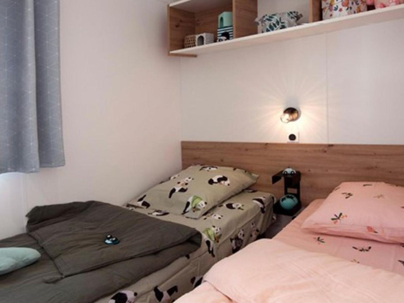 Mobile Home. This mobile home comes with 2 bedrooms, kitchen, a terrace and 1 bathroom with a hairdryer. Guests can make meals in the kitchen that features kitchenware, a microwave, a toaster and an electric kettle. This mobile home has a private entrance, a dining area, a TV and outdoor furniture.