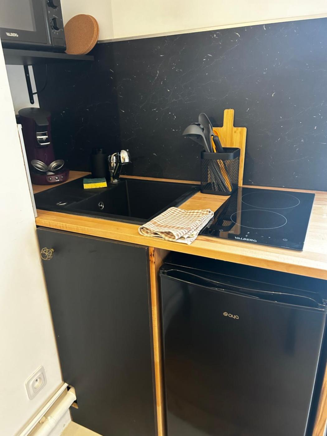 Appartement 1 Chambre. The apartment features 1 bedroom and 1 bathroom with a shower and free toiletries. Meals can be prepared in the kitchen, which is fitted with a stovetop, a refrigerator, kitchenware and a microwave. The apartment has parquet floors, a seating area with a flat-screen TV, a washing machine, a coffee machine as well as city views. The unit offers 1 bed.